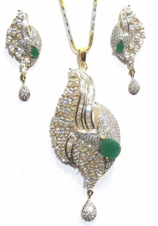 Jewelshingar Jewellery Silver Gold Plated American Diamond Pendant Set For Women ( 70514ADP )