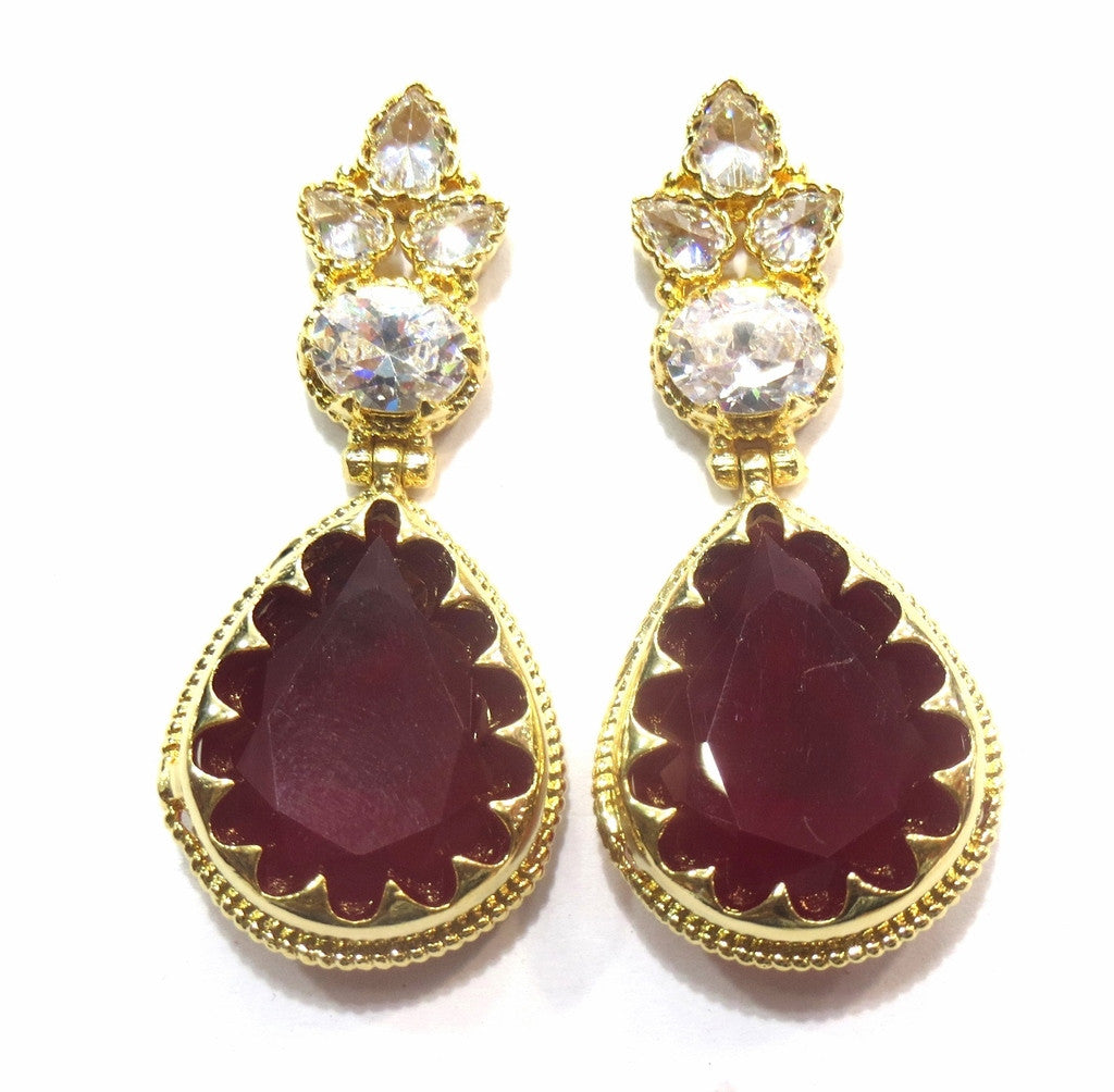 Jewelshingar Jewellery Silver / Gold Plated American Diamond Earrings Danglers For Women ( 16656-ead-ruby )