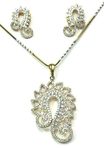 Fine quality american diamond pendent set with silver and gold plated chain.Simplicity is the best adornment. This jewel symbolises that simplicity.Relish the bliss that comes by adorning this lovely piece of jewellery. Wear it and glow with radiance and delight at the same time.Super fine quality product from the house of shingar ksvk jewels.Brilliance is an understatement for this piece of art. Steal everyone's hearts with this stunning finely crafted jewellery suitable for wedding & festive occasions high quality stones used setting jewellery (not gum pasted)