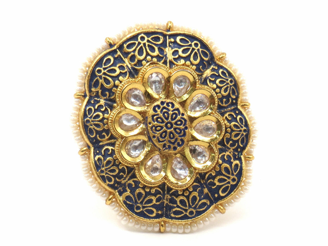 Weight - 11.2 Grams , Plating - Gold, Colour / Stone - Blue, Ring Size-FreeSize, Length - 3.5 Cms. , Width - 3 Cms. ,
