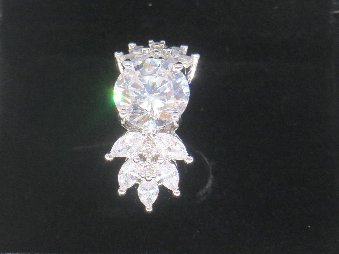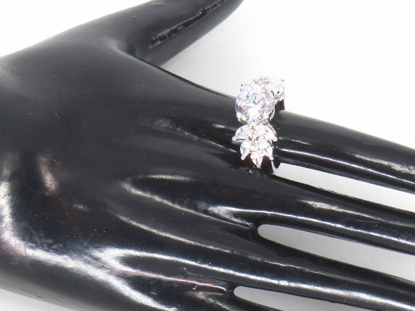 Weight - 4.59 Grams , Plating - Silver, Colour / Stone - Clear, Length - 2.5 Cms. , Width - 2 Cms. , Indian Ring Size - 10