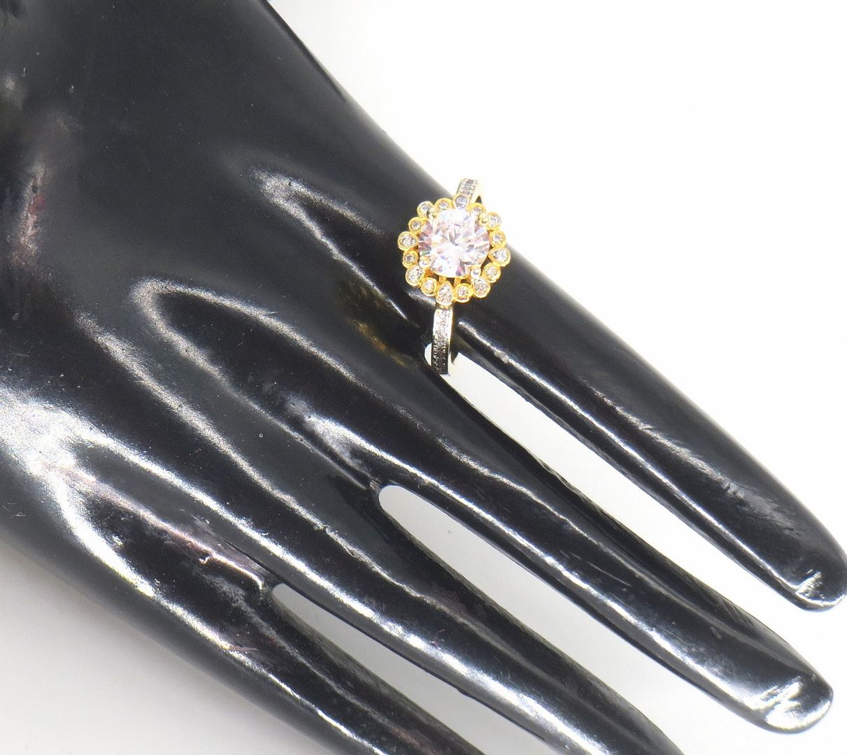 Weight - 2.64 Grams , Plating - Gold, Colour / Stone - Clear, Length - 2.4 Cms. , Width - 1.2 Cms. , Size 15