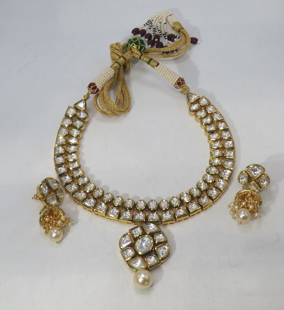 Jewelshingar Jewellery Fine Antique Polki Kundan Gold Plated Clear Colour Necklace For Women ( 60592ACS )