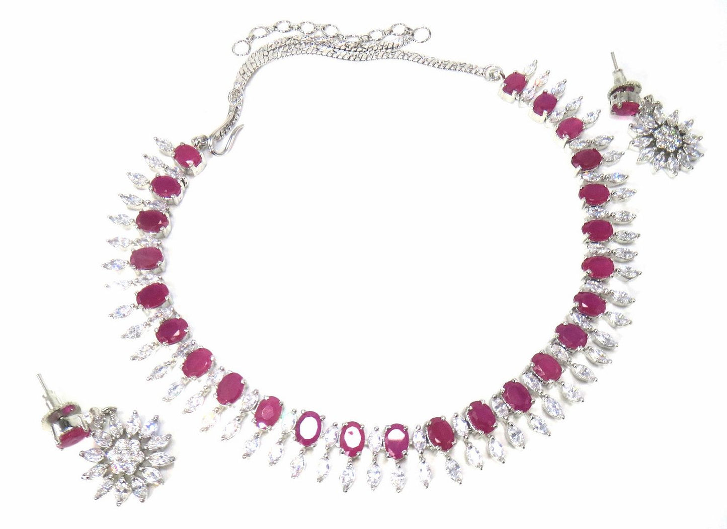 Jewelshingar Jewellery Fine American Diamond Silver Plated Red Colour Necklace For Women ( 60808NAD )