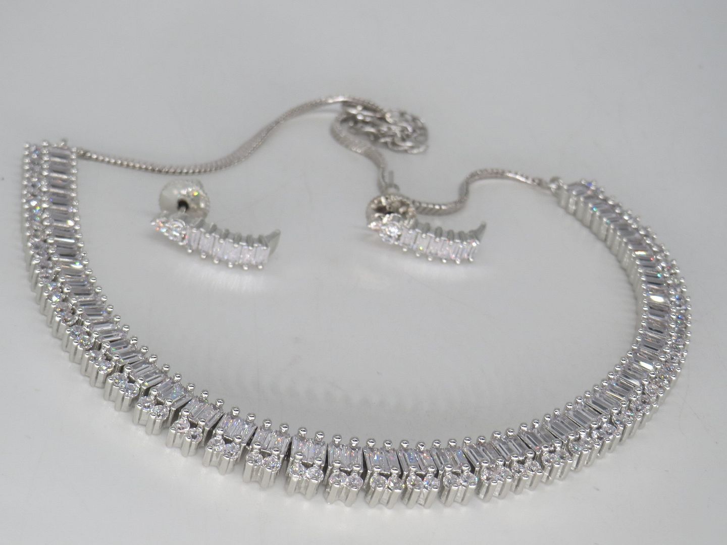 Colour - Clear , Weight - 33.7 Grams ,, Set Width 1 Cms. , Set Length 20 Cms. , Plating - Silver , Earrings Length - 2 Cms. Earrings Width - 1 Cms.