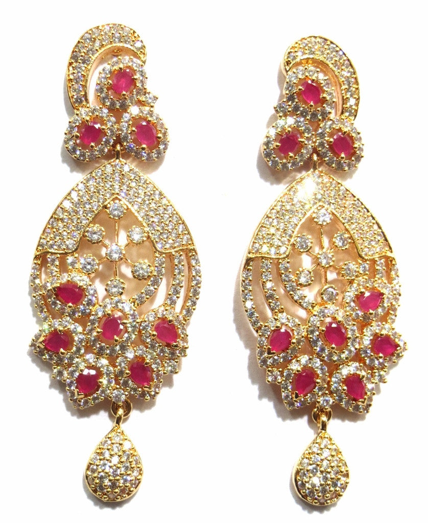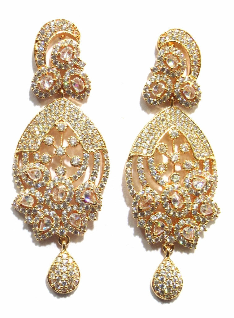 Cubic Zirconia Earrings Danglers in Diamond Finish.Latest New Design Fashion Jewellery.Wear This And You Will Be The Centre Of Attraction Of Any Event. Fine Micro Gold /Silver plating used.High Class jewellery from shingar ksvk jewels.