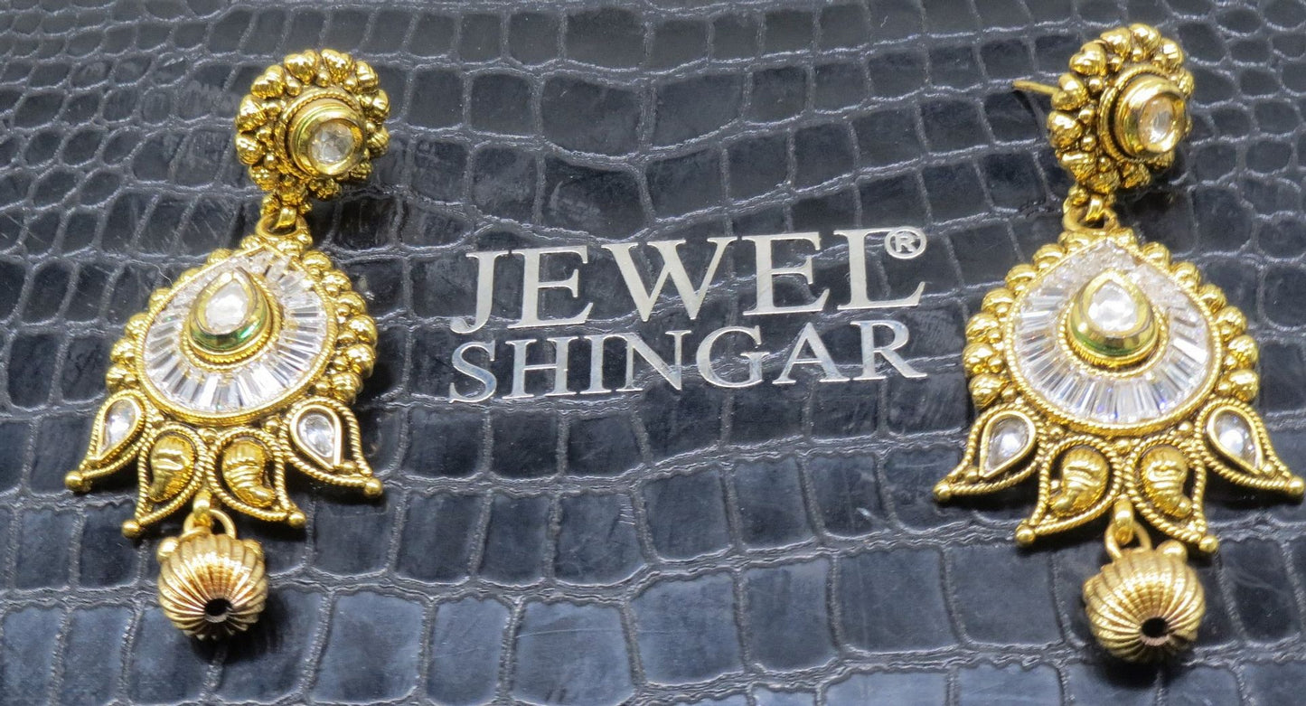 Jewelshingar Jewellery Gold Plated Polki Kundan Earrings For Women ( 92841PED )