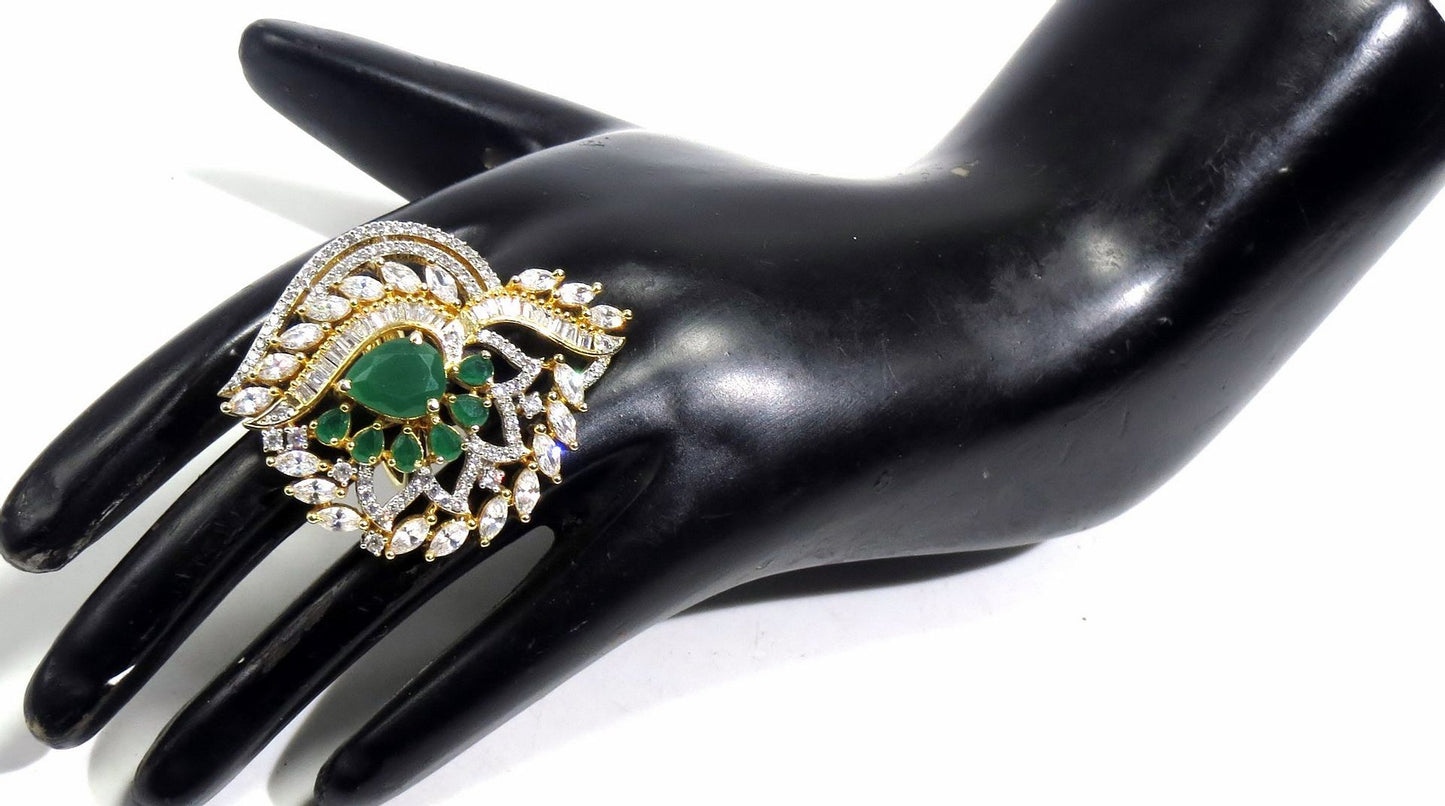 Weight - 12 Grams , Plating - Gold, Colour / Stone - Green, Length - 4.5 Cms. , Width - 4 Cms. , Size Freesize