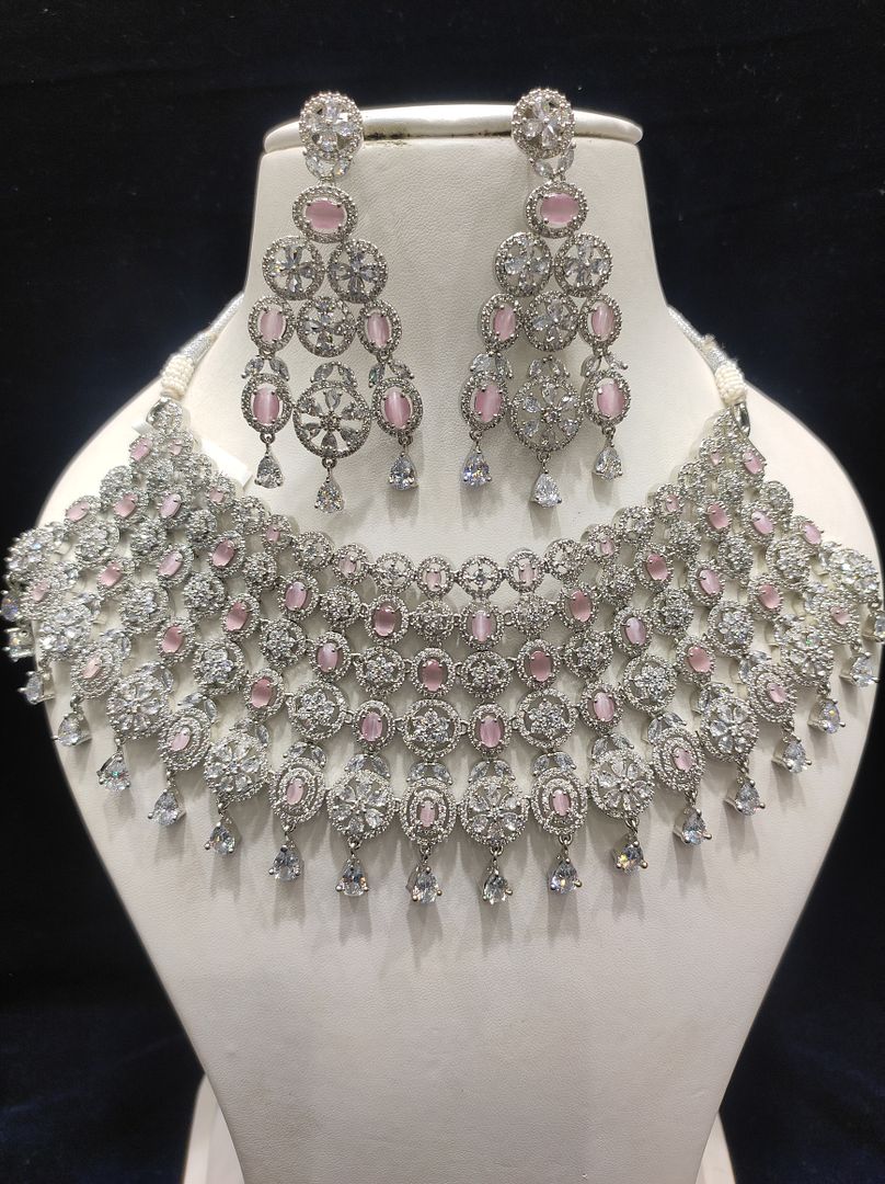 Pink Colour Silver Plating Necklace By Chokerset CSNAD704