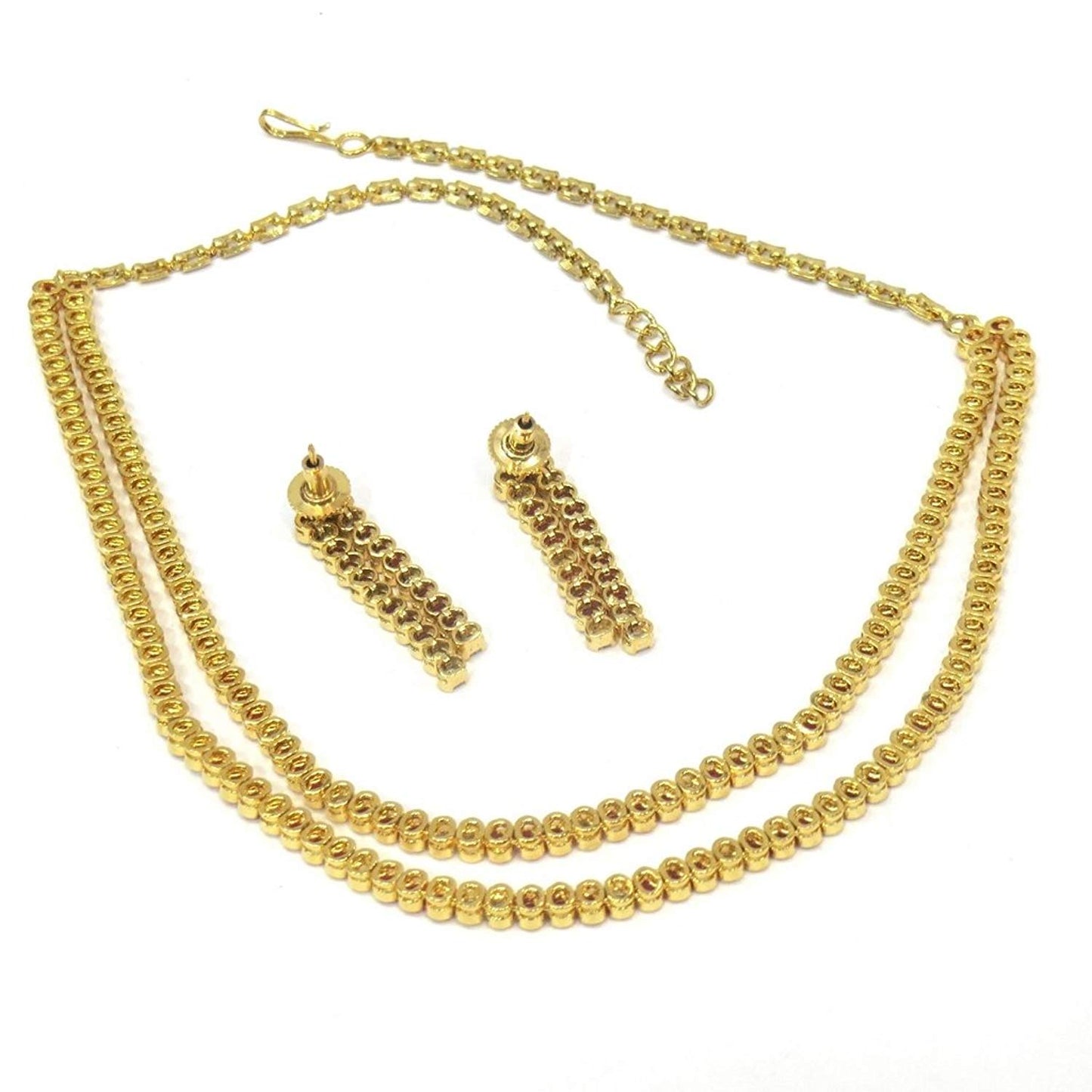 Most Jewelshingar products are made of brass and bronze mix plated with 22k gold studded or strung with cultured and semi precious stones.