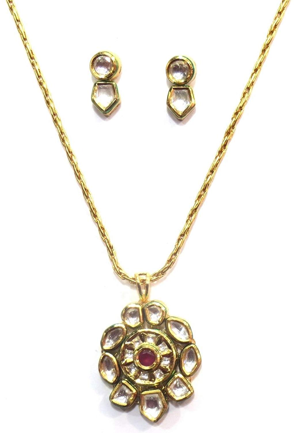 Jewelshingar Jewellery Antique Gold Plated Fine Polki Kundan Pendant Set For Girls ( 17480-acs )