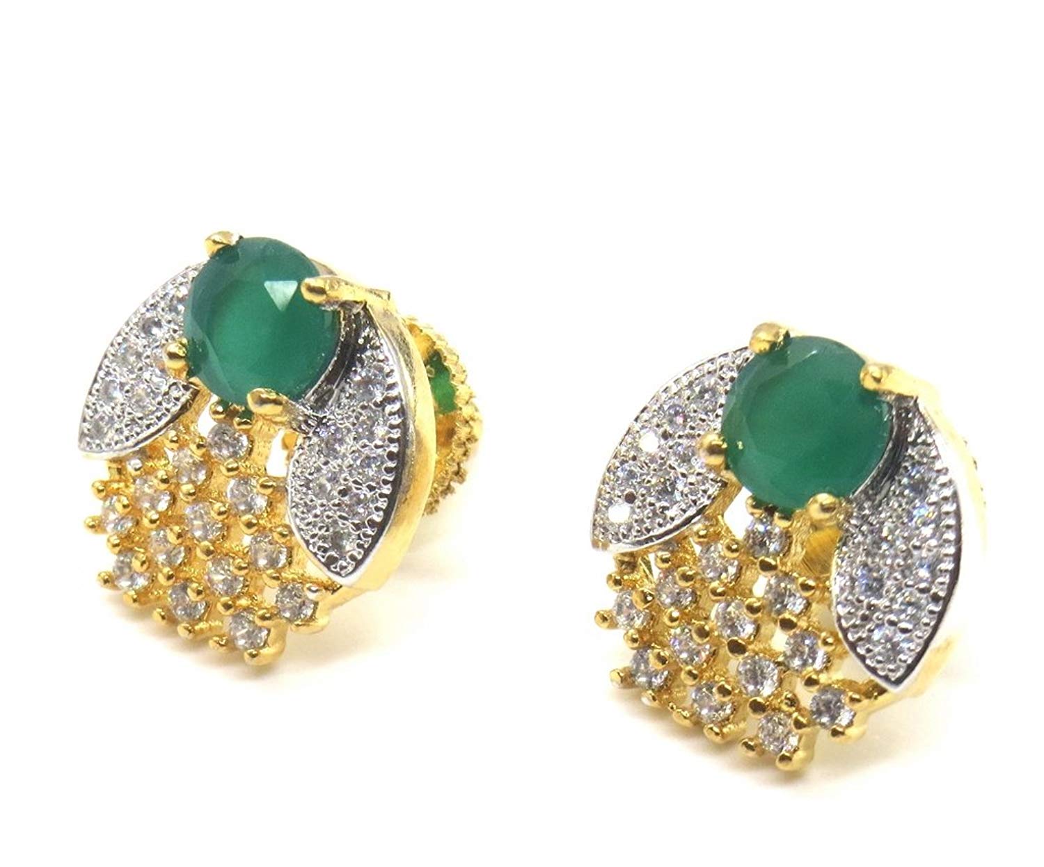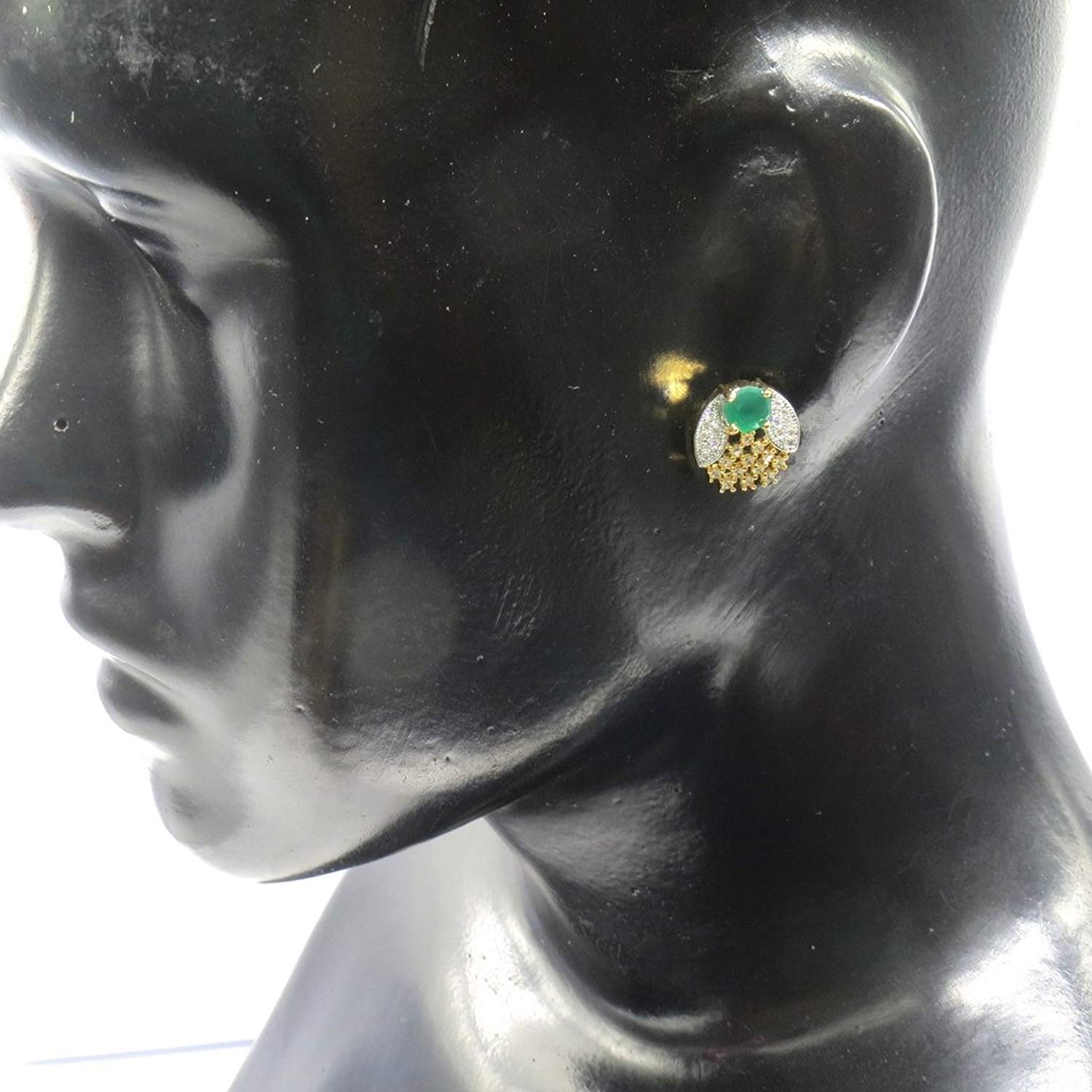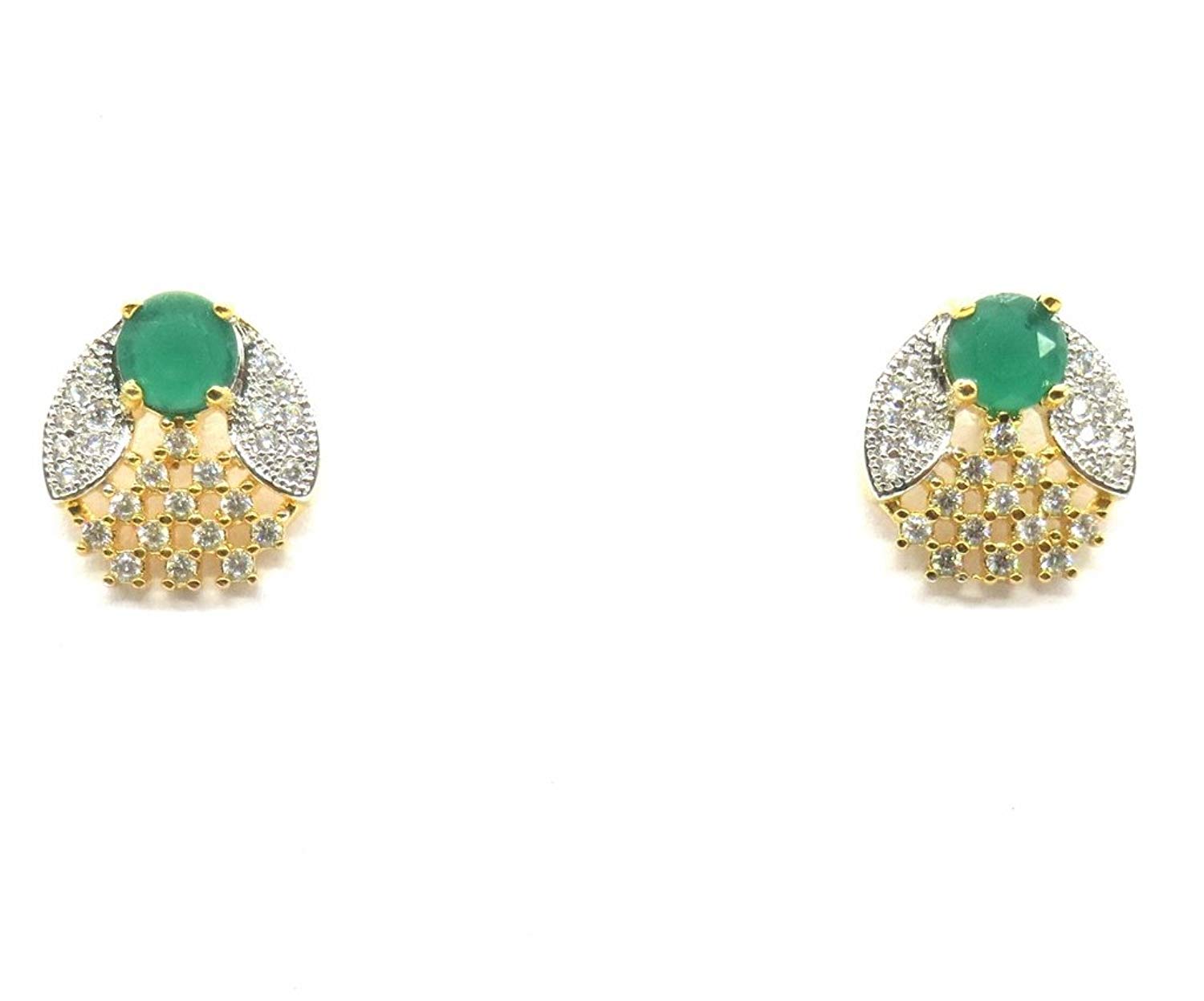 Jewelshingar Jewellery Diamond Look Silver Gold Plated Green Colour Earrings For Women (44242-ead-green-studs)