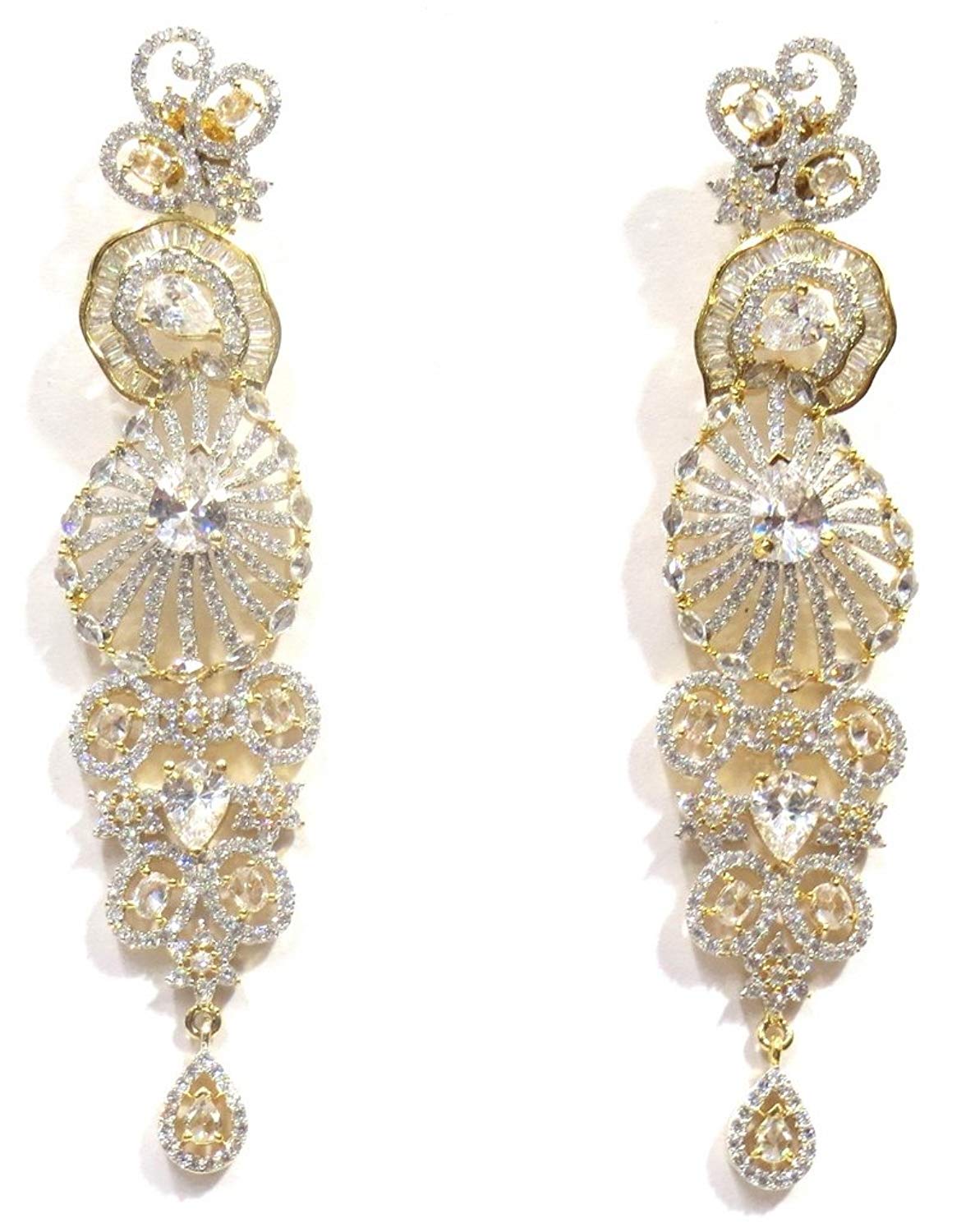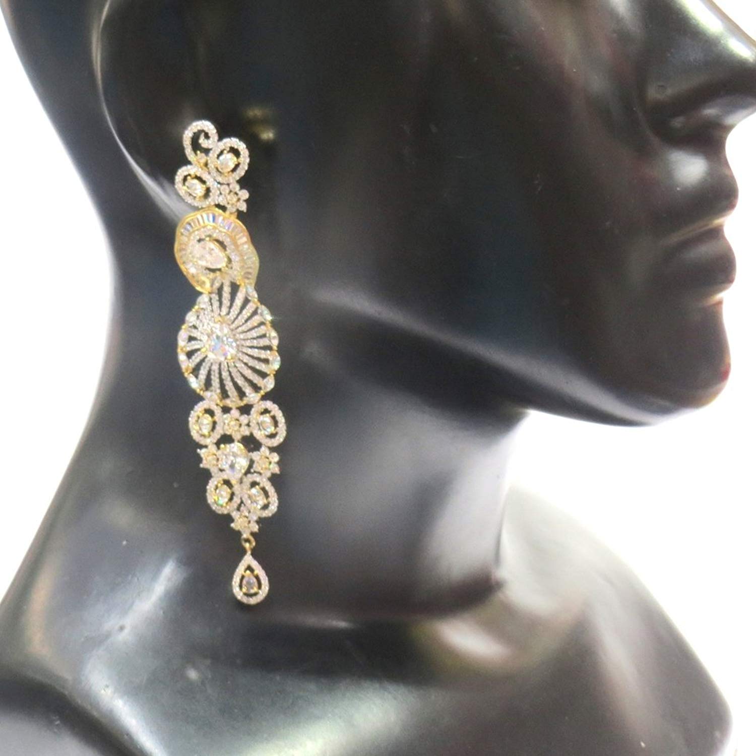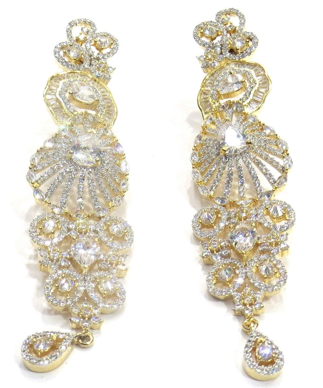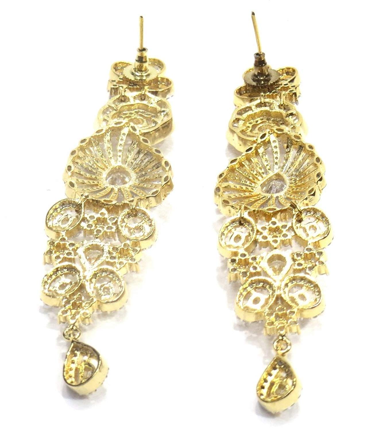 - Dangle & Drop Earrings Weight - 34 Grams , Plating - Gold, Colour - Clear, Length - 10 Cms. , Width - 2 Cms. , .
