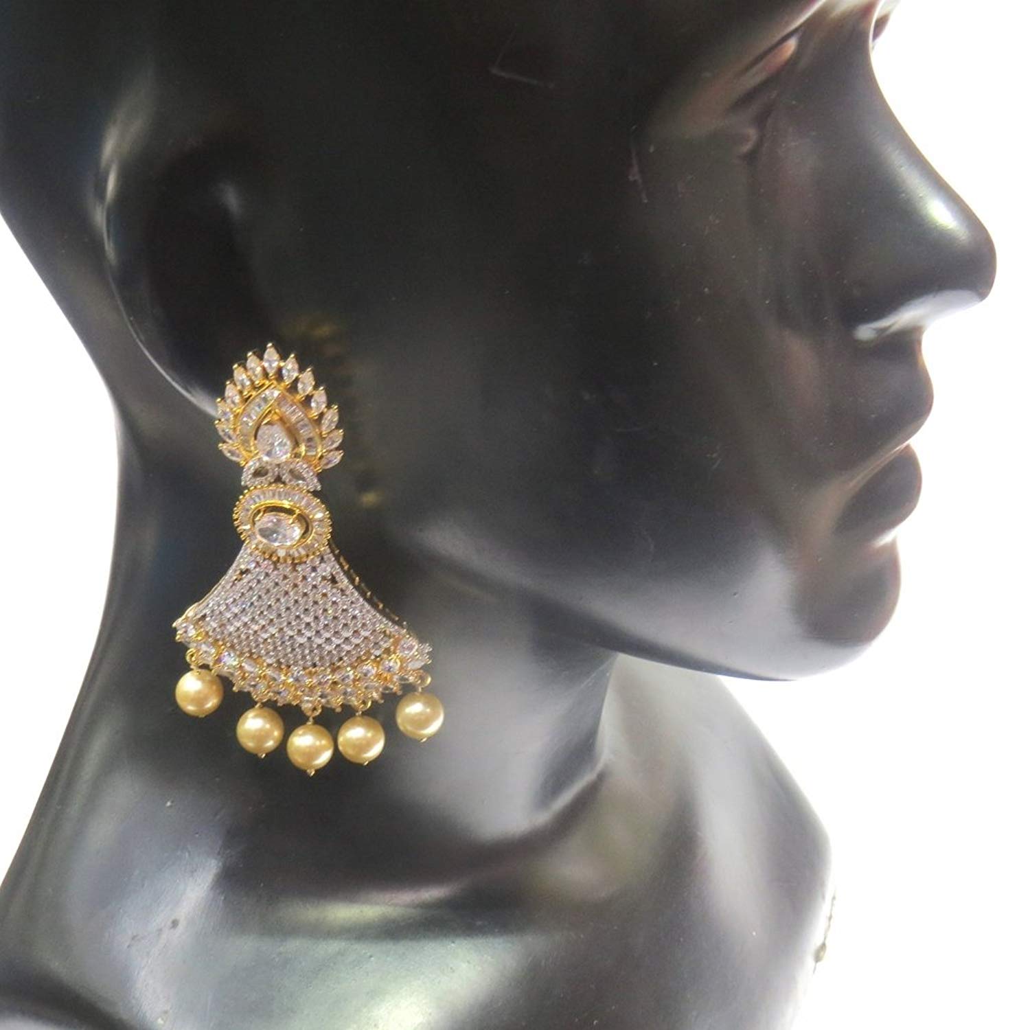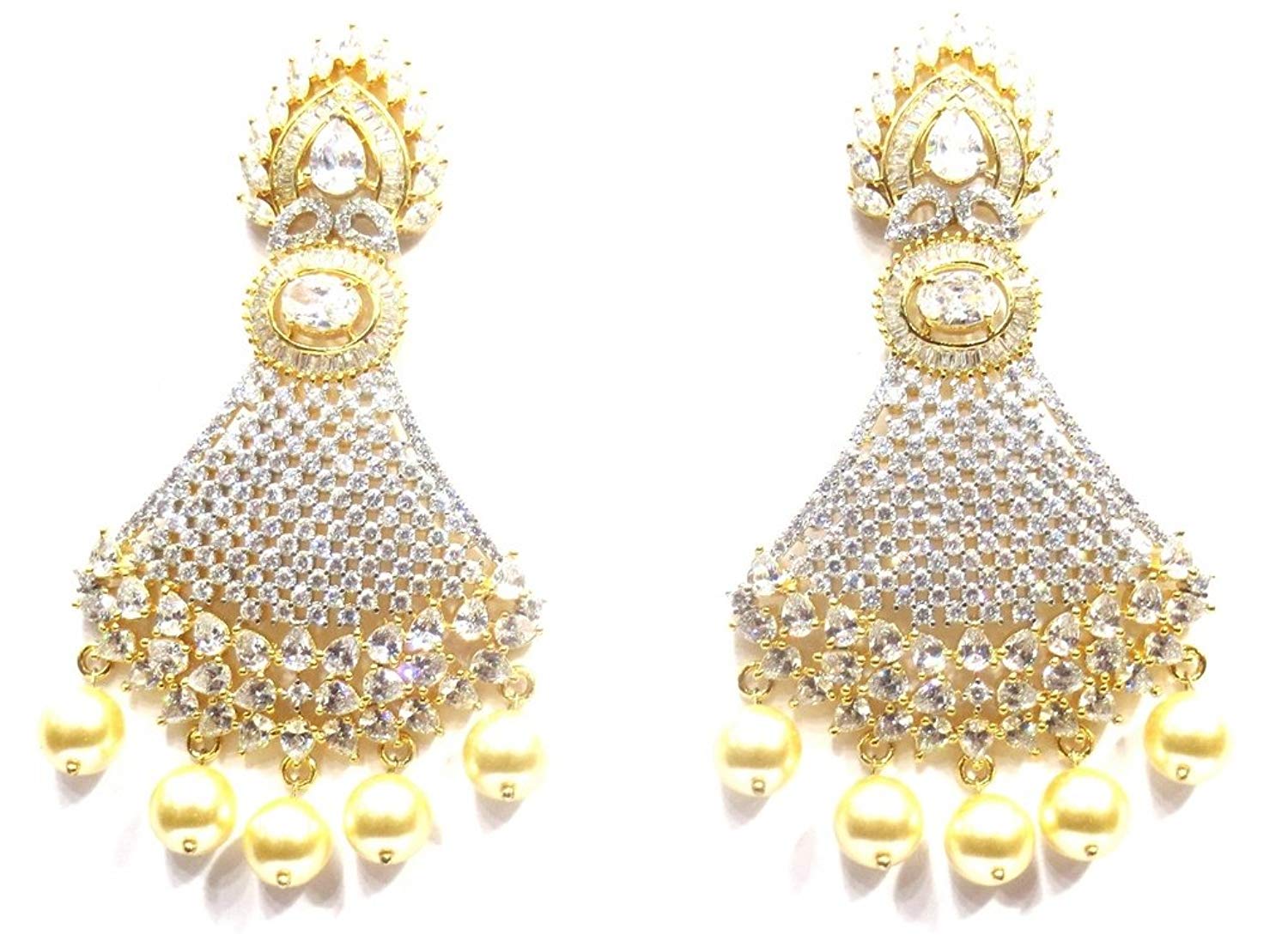 - Dangle & Drop Earrings Weight - 45 Grams , Plating - Gold, Colour - Clear, Length - 8 Cms. , Width - 4 Cms. , .