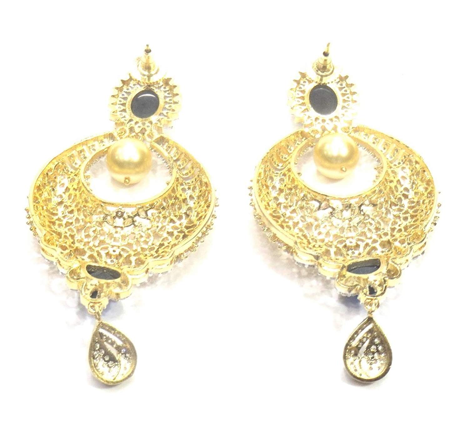 - Dangle & Drop Earrings Weight - 38 Grams , Plating - Gold, Colour - Blue, Length - 8.5 Cms. , Width - 4 Cms. , .