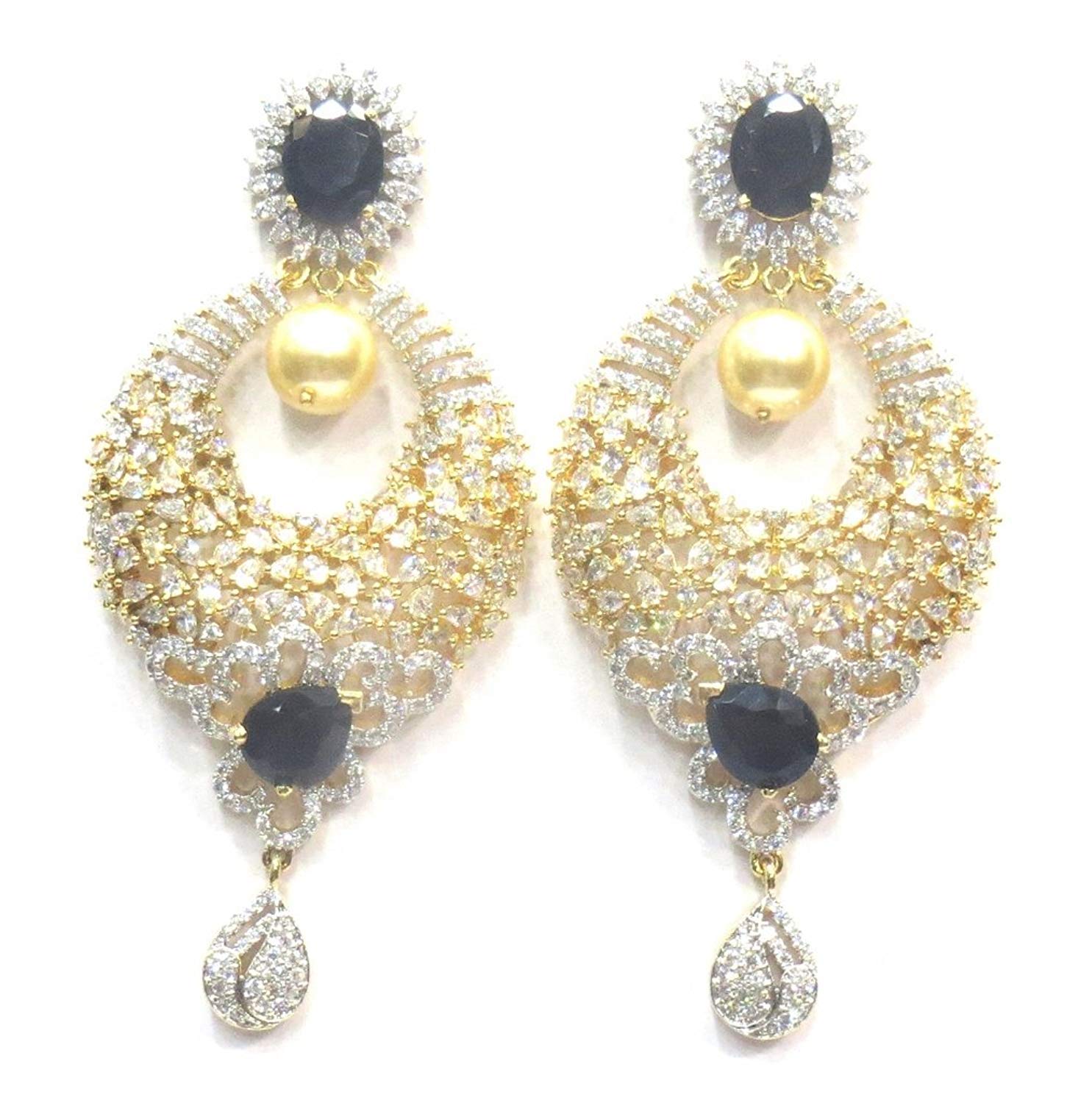 Jewelshingar Jewellery Fine Gold Plated Dangle & Drop Earrings For Girls ( 34511-ead-Blue )