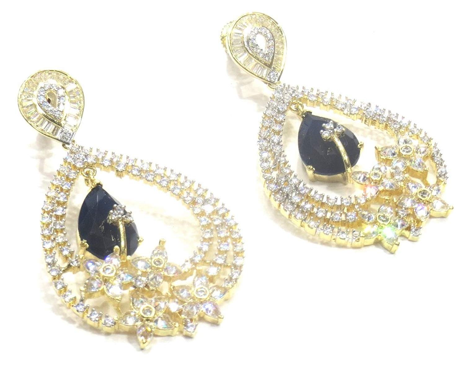 Jewelshingar Jewellery Fine Gold Plated Dangle & Drop Earrings For Girls ( 34539-ead-blue )
