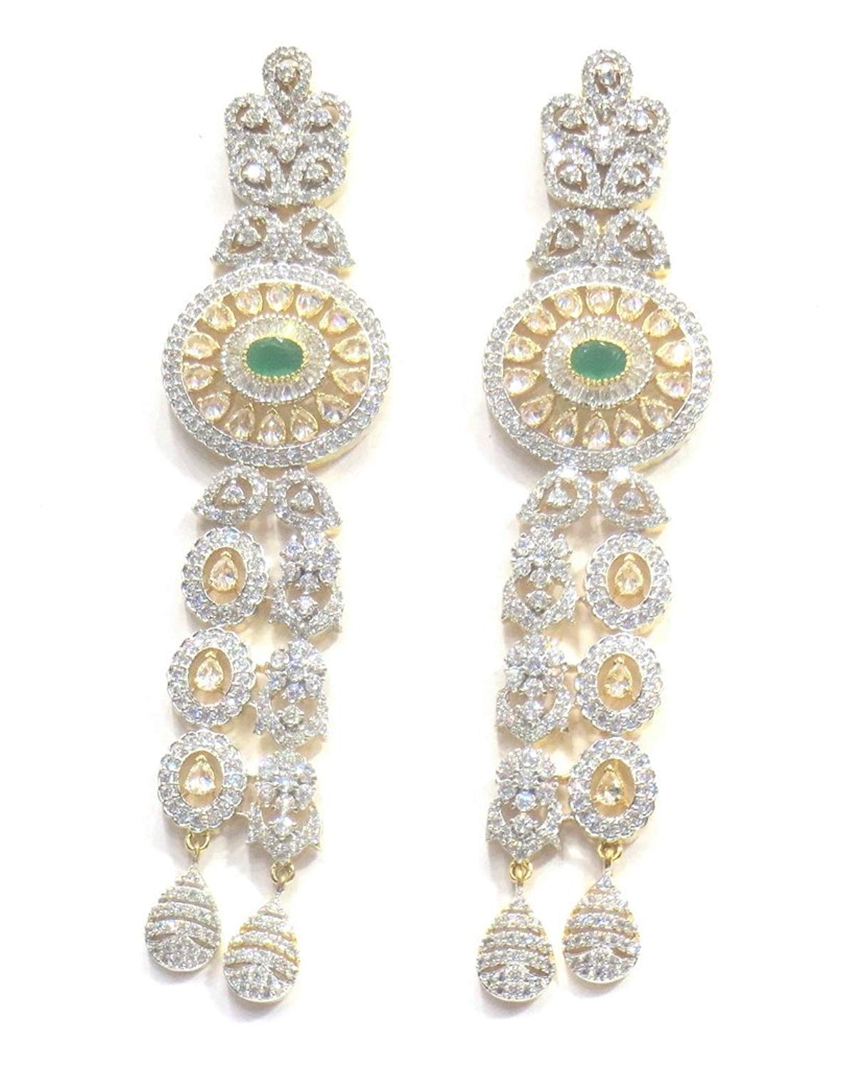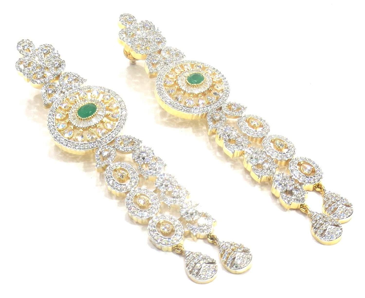 - Dangle & Drop Earrings Weight - 50 Grams , Plating - Gold, Colour - Green, Length - 12 Cms. , Width - 3 Cms. , .