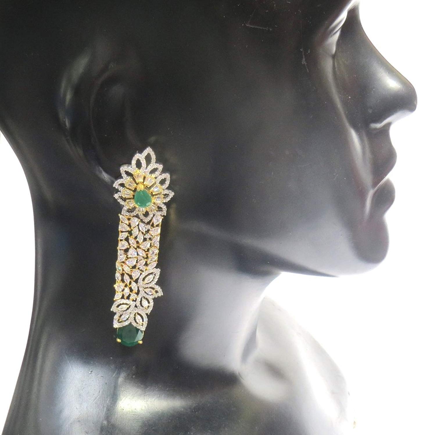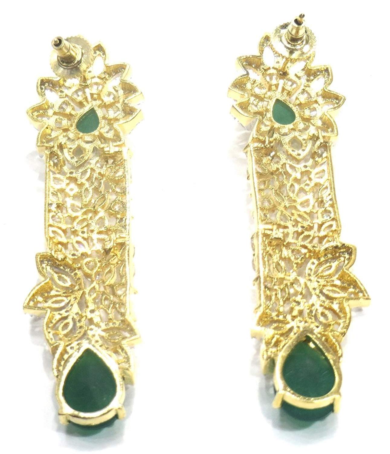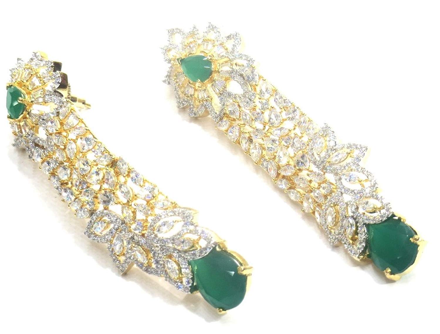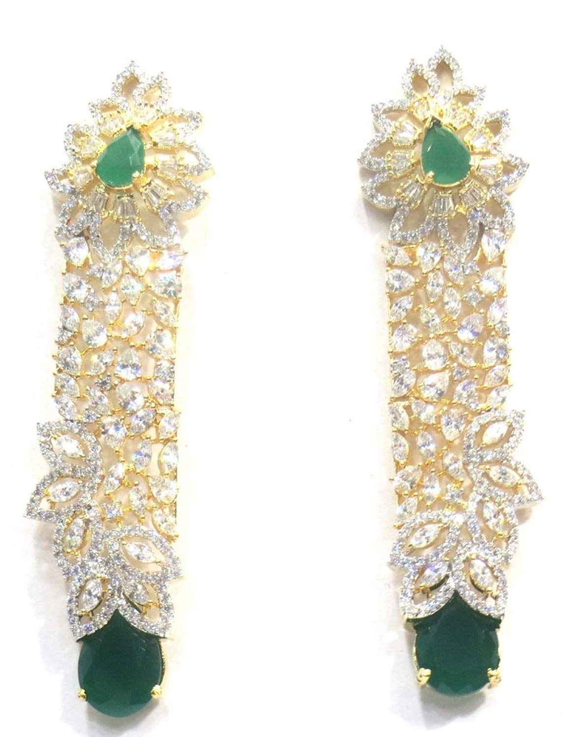 - Dangle & Drop Earrings Weight - 26 Grams , Plating - Gold, Colour - Green, Length - 8 Cms. , Width - 1.5 Cms. , .