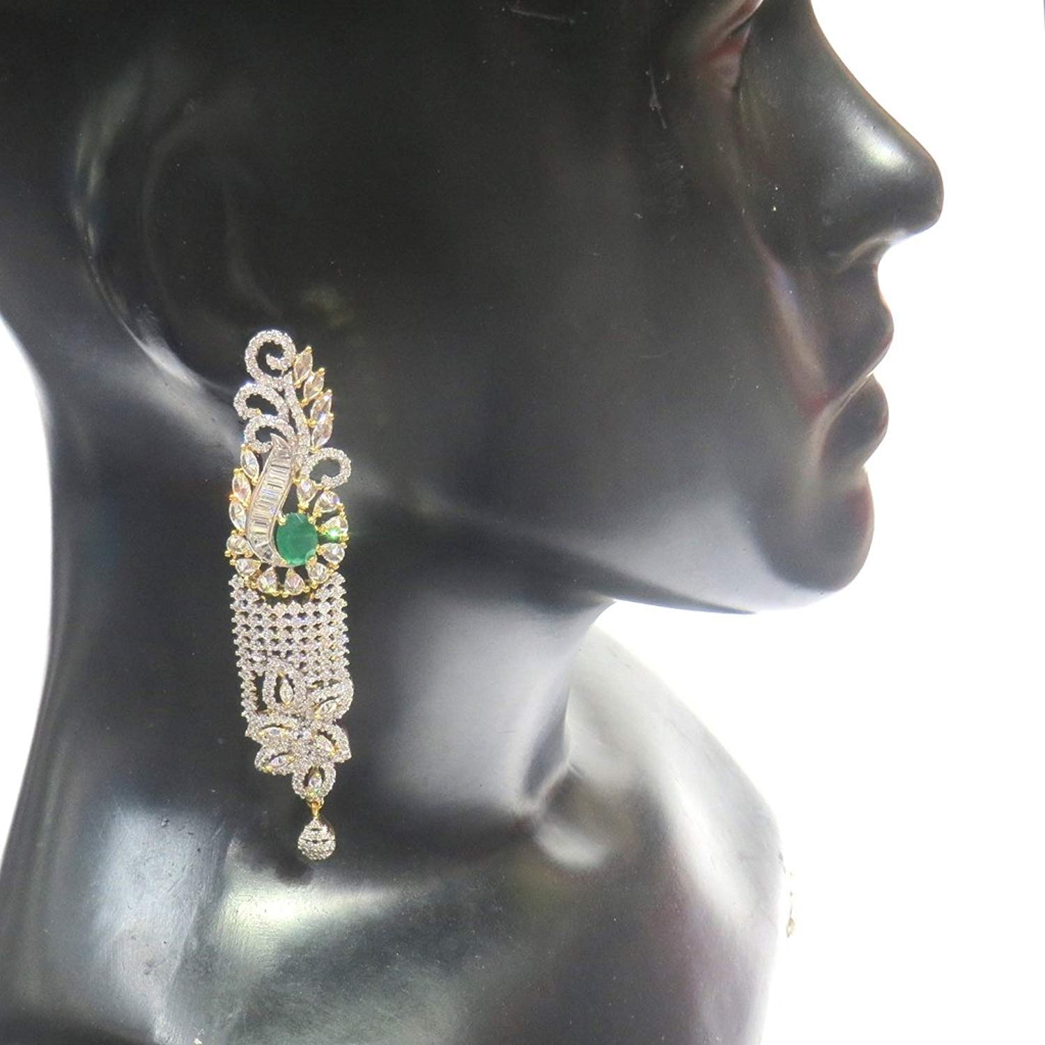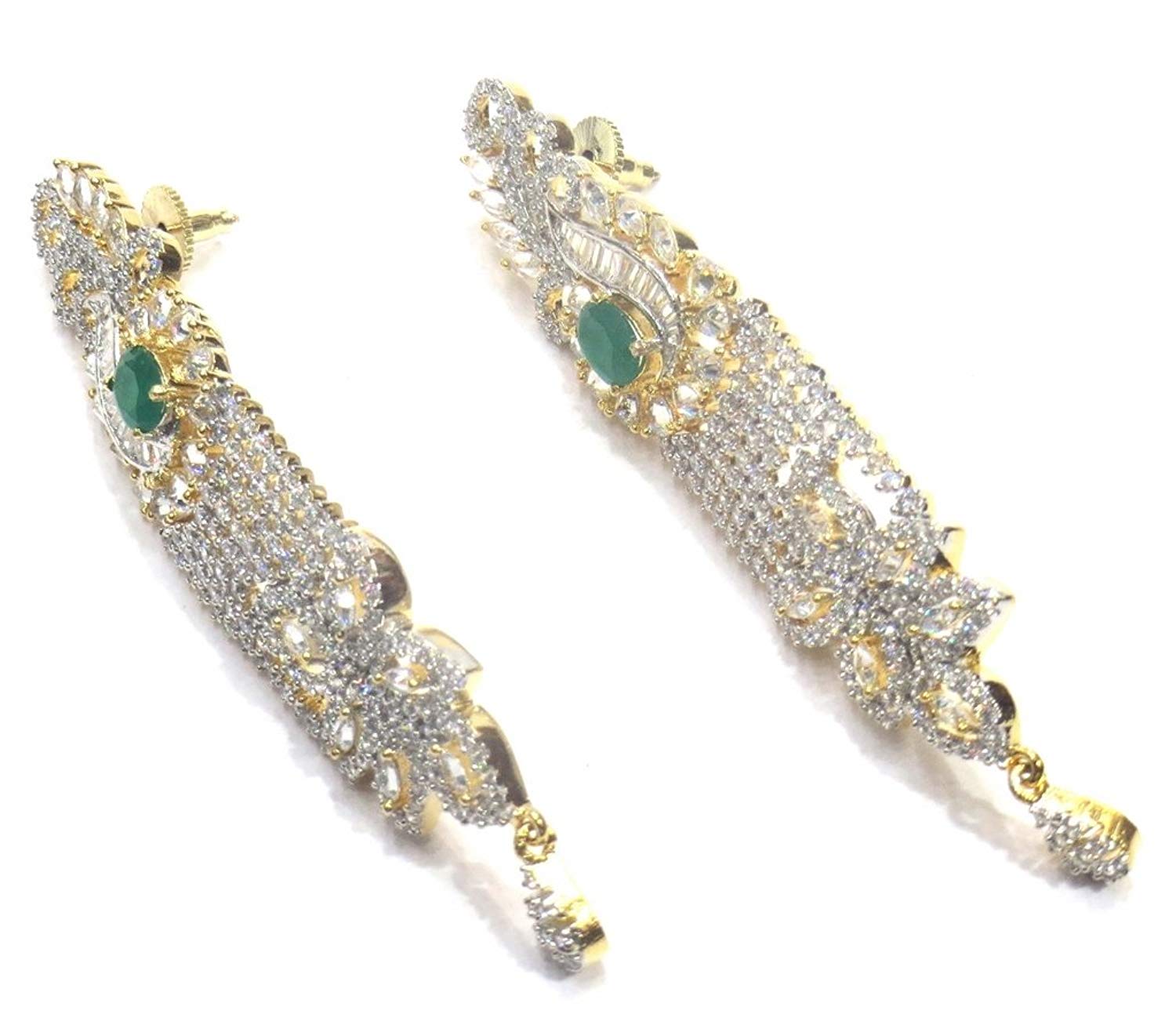 - Dangle & Drop Earrings Weight - 27 Grams , Plating - Gold, Colour - Green, Length - 9 Cms. , Width - 2 Cms. , .