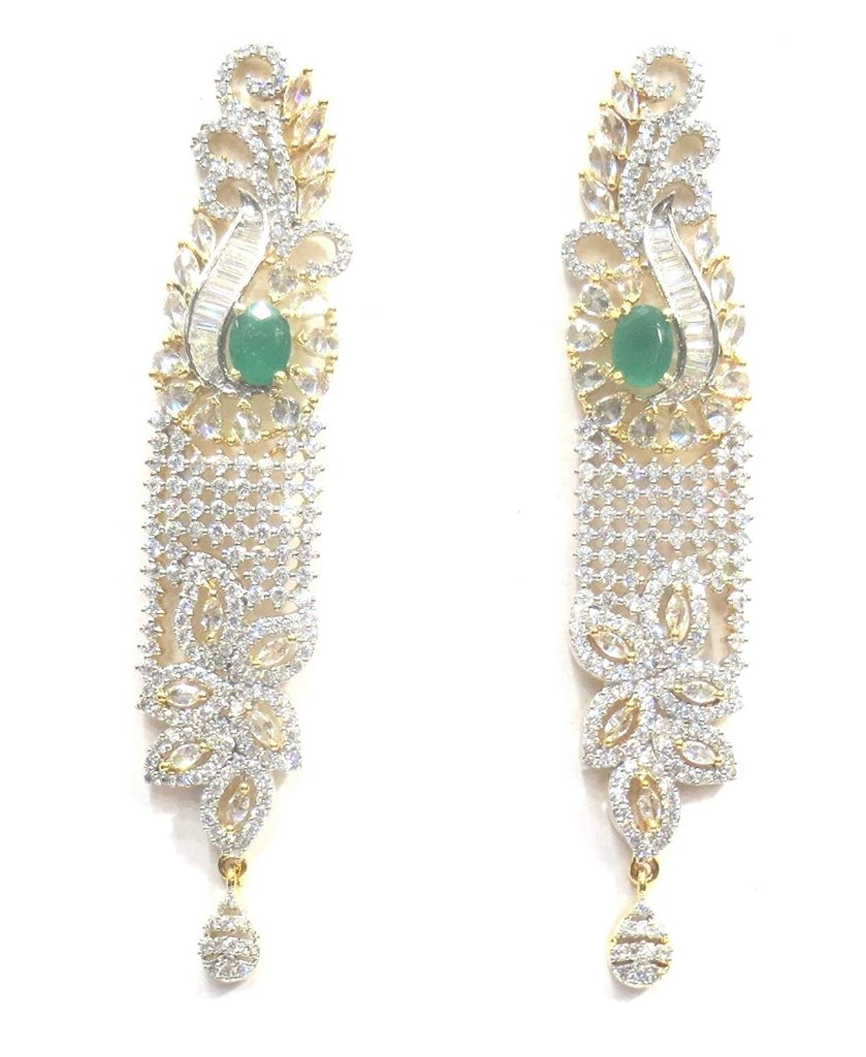 Jewelshingar Jewellery Fine Gold Plated Dangle & Drop Earrings For Girls ( 34578-ead-green )