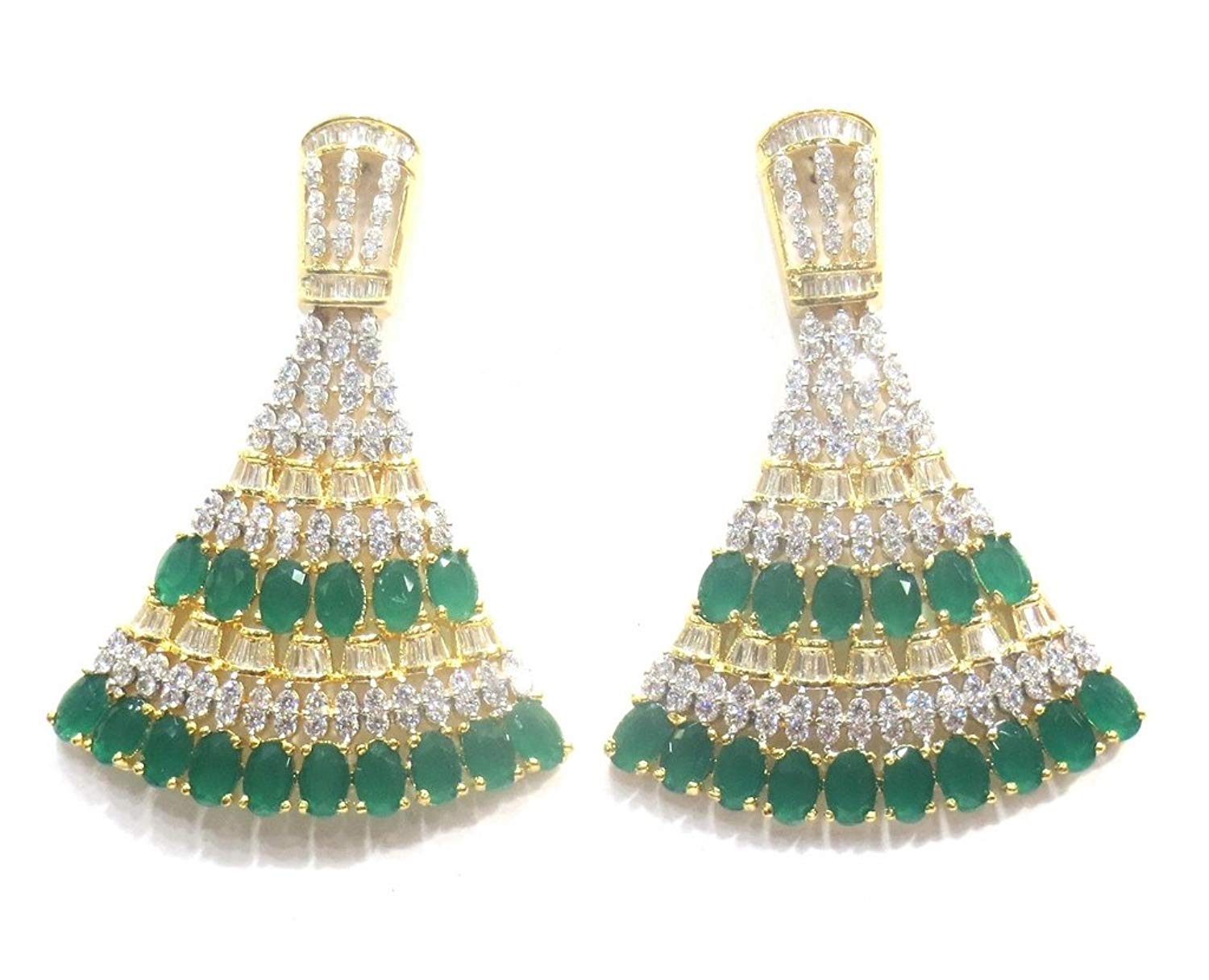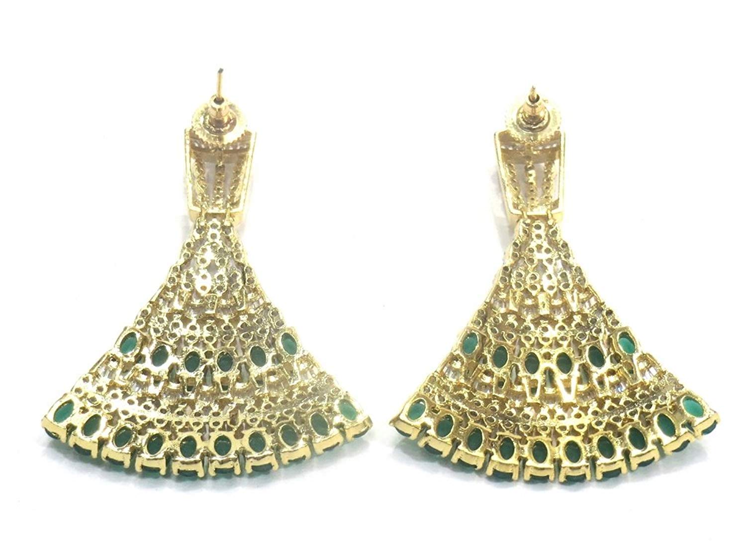 - Dangle & Drop Earrings Weight - 27 Grams , Plating - Gold, Colour - Green, Length - 6.5 Cms. , Width - 4 Cms. , .