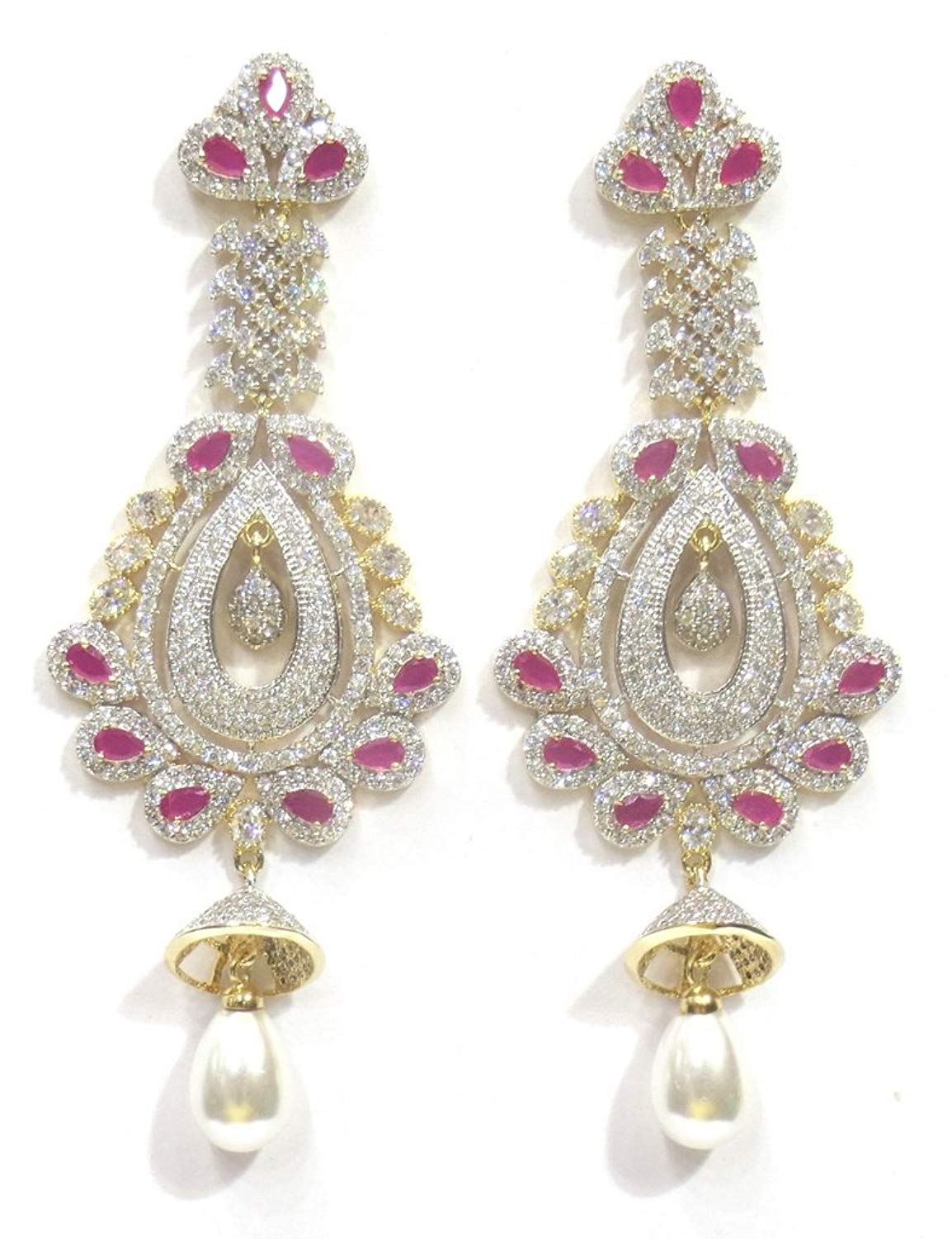 Jewelshingar Jewellery Fine Gold Plated Dangle & Drop Earrings For Girls ( 34622-ead-ruby )