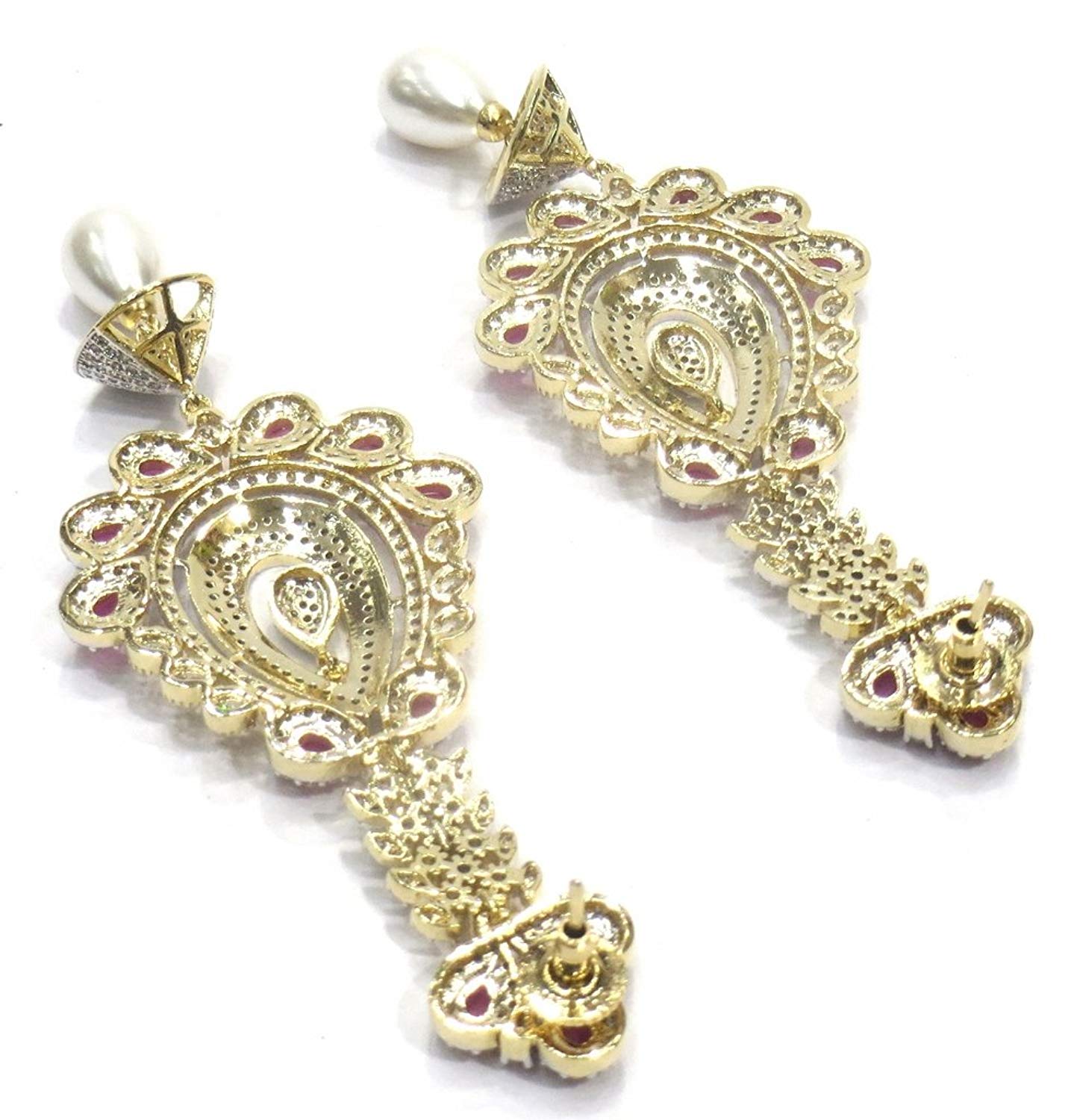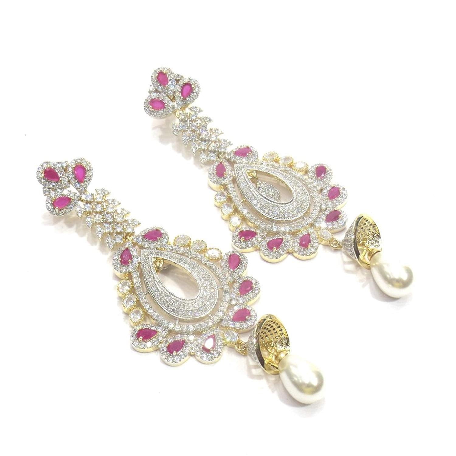 - Dangle & Drop Earrings Weight - 40 Grams , Plating - Gold, Colour - Pink, Length - 10 Cms. , Width - 4 Cms. , .