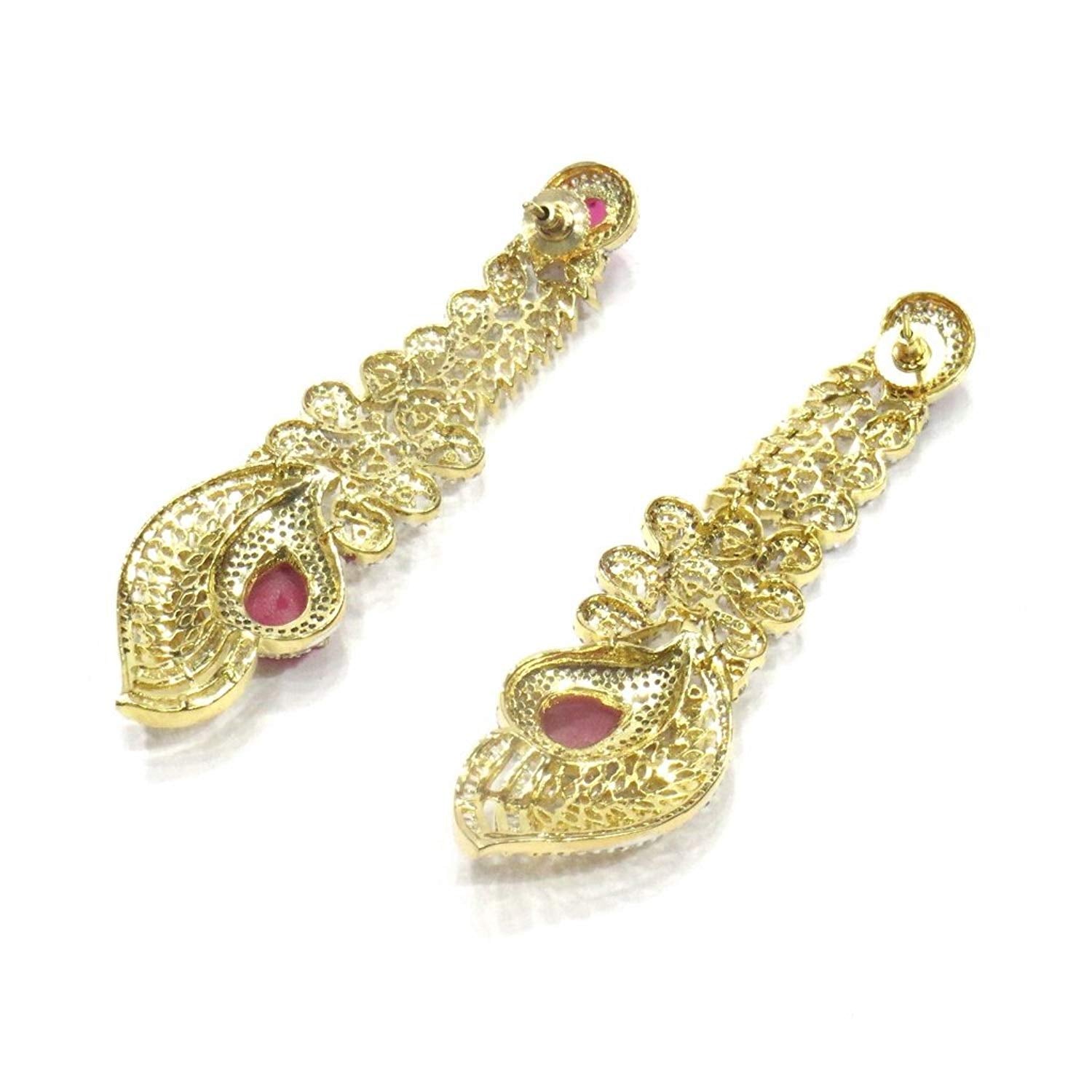 - Dangle & Drop Earrings Weight - 39 Grams , Plating - Gold, Colour - Pink, Length - 9.5 Cms. , Width - 2.5 Cms. , .