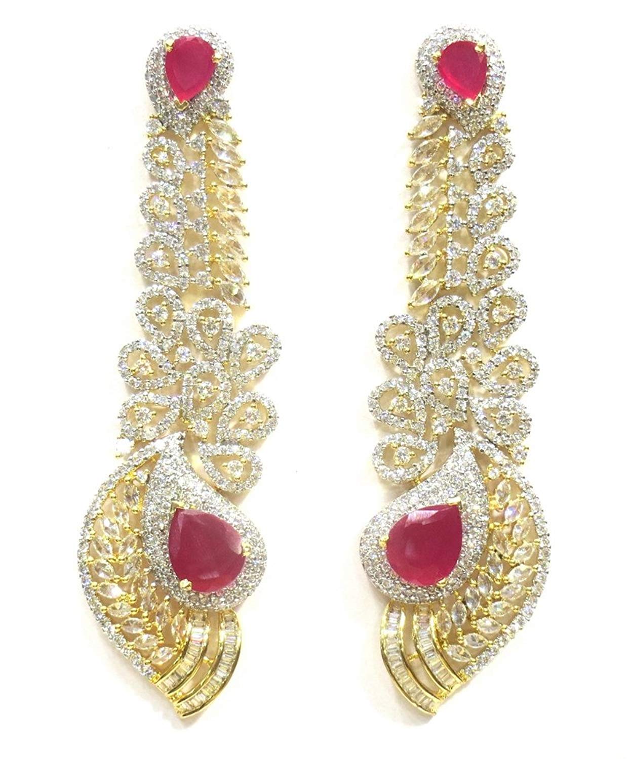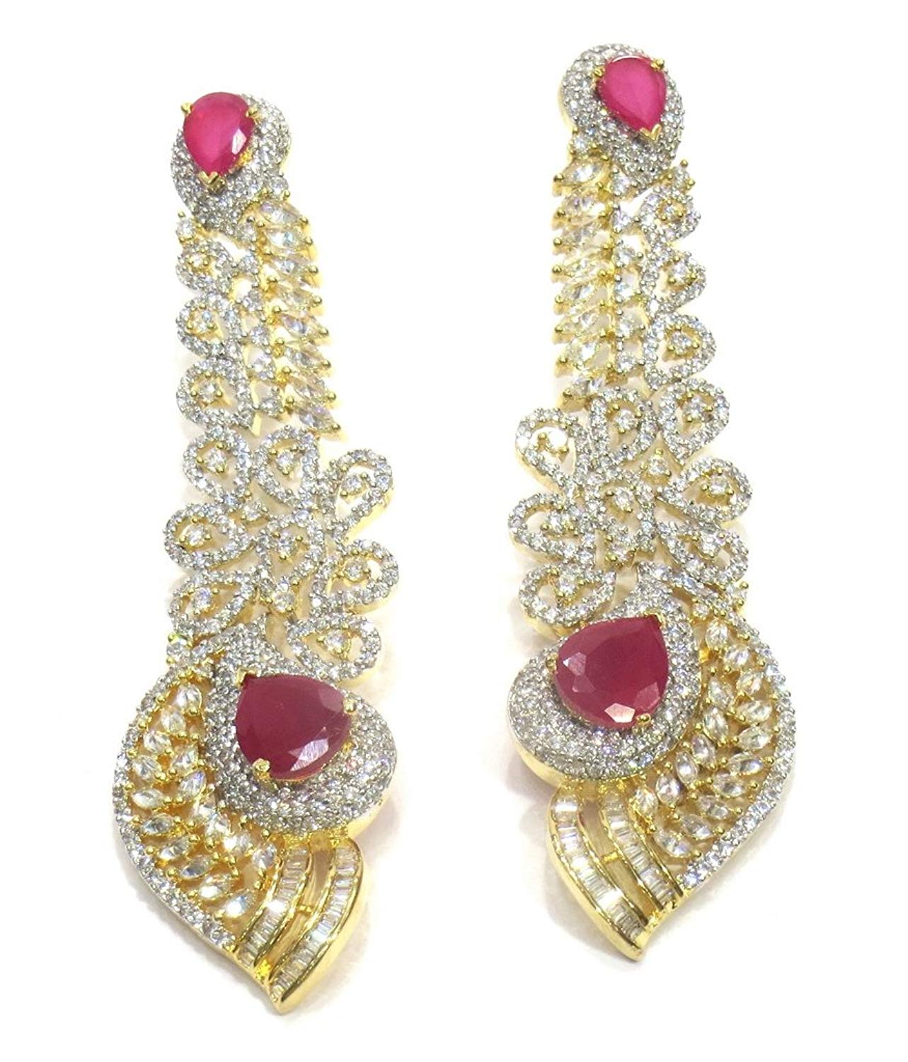 Jewelshingar Jewellery Fine Gold Plated Dangle & Drop Earrings For Girls ( 34641-ead-ruby )