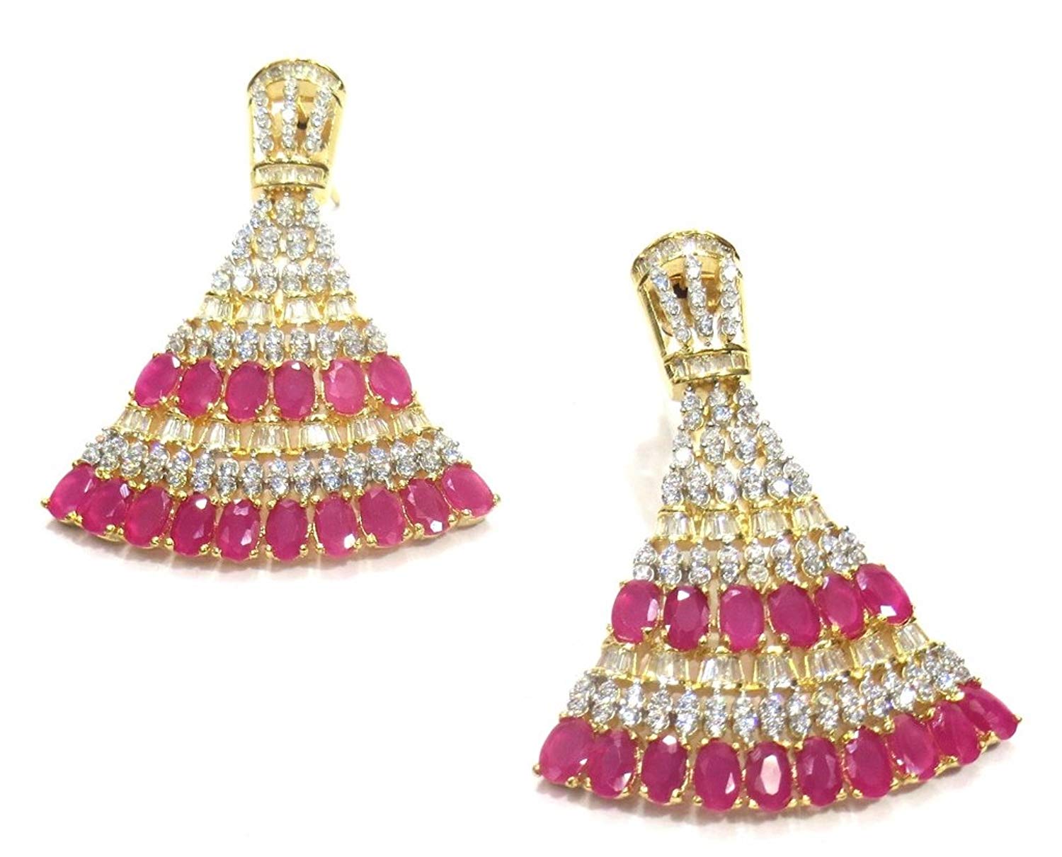 Jewelshingar Jewellery Fine Gold Plated Dangle & Drop Earrings For Girls ( 34666-ead-ruby )