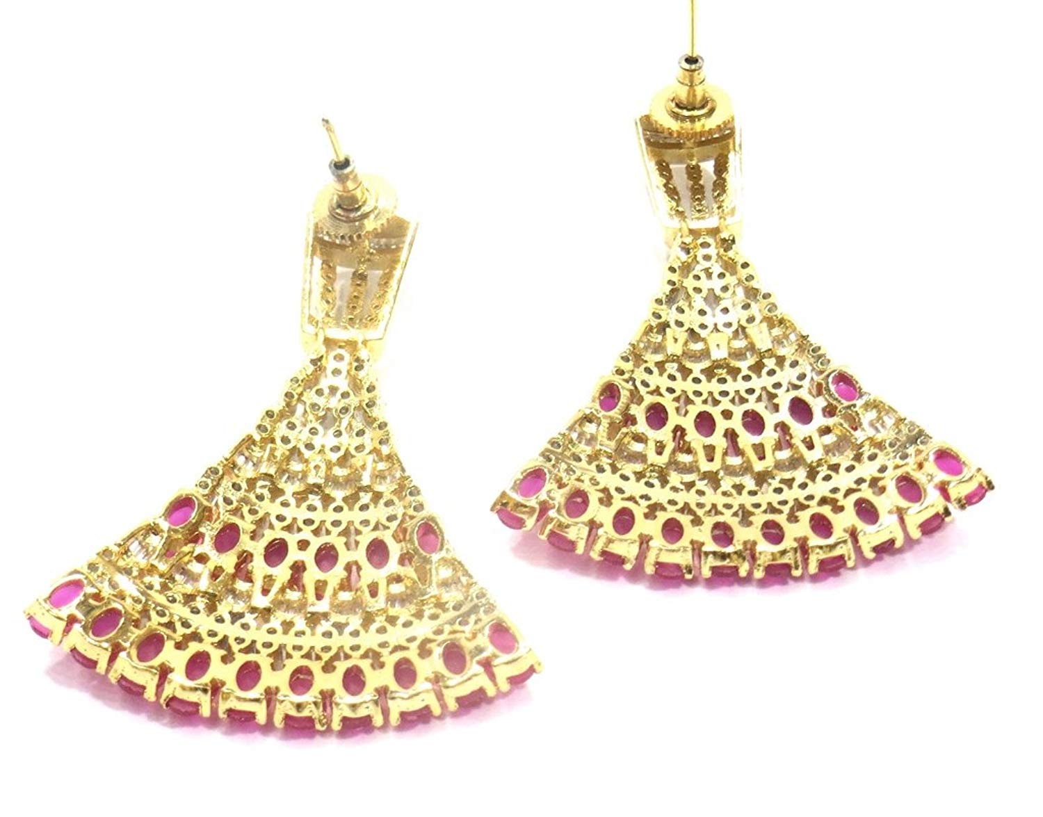 - Dangle & Drop Earrings Weight - 27 Grams , Plating - Gold, Colour - Pink, Length - 6.5 Cms. , Width - 4.5 Cms. , .