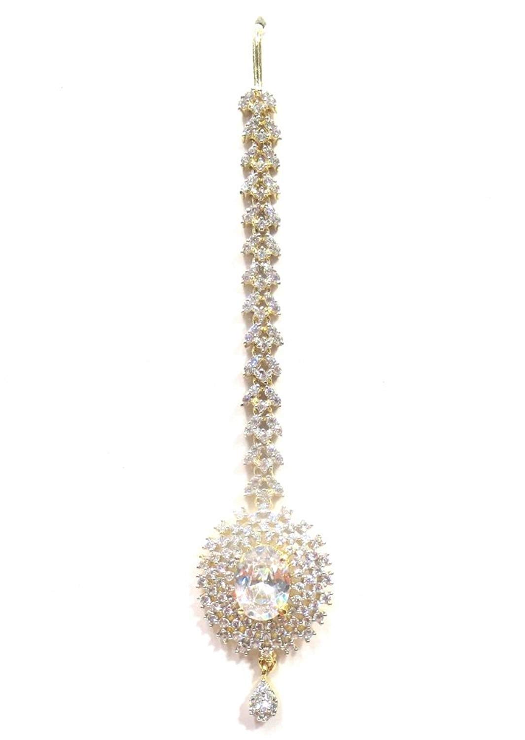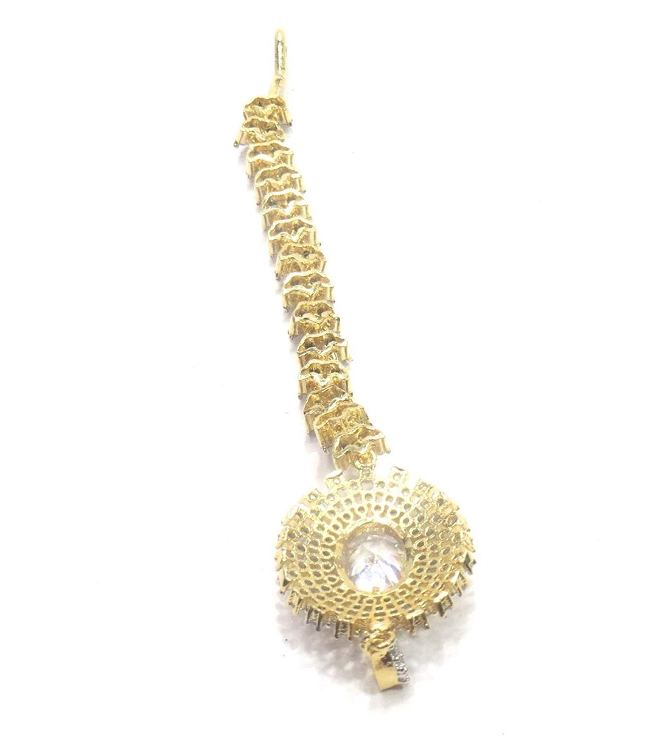 - Maangtikka Weight - 11 Grams , Plating - Gold, Colour - Clear, Length - 12 Cms. , Width - 2 Cms. , .
