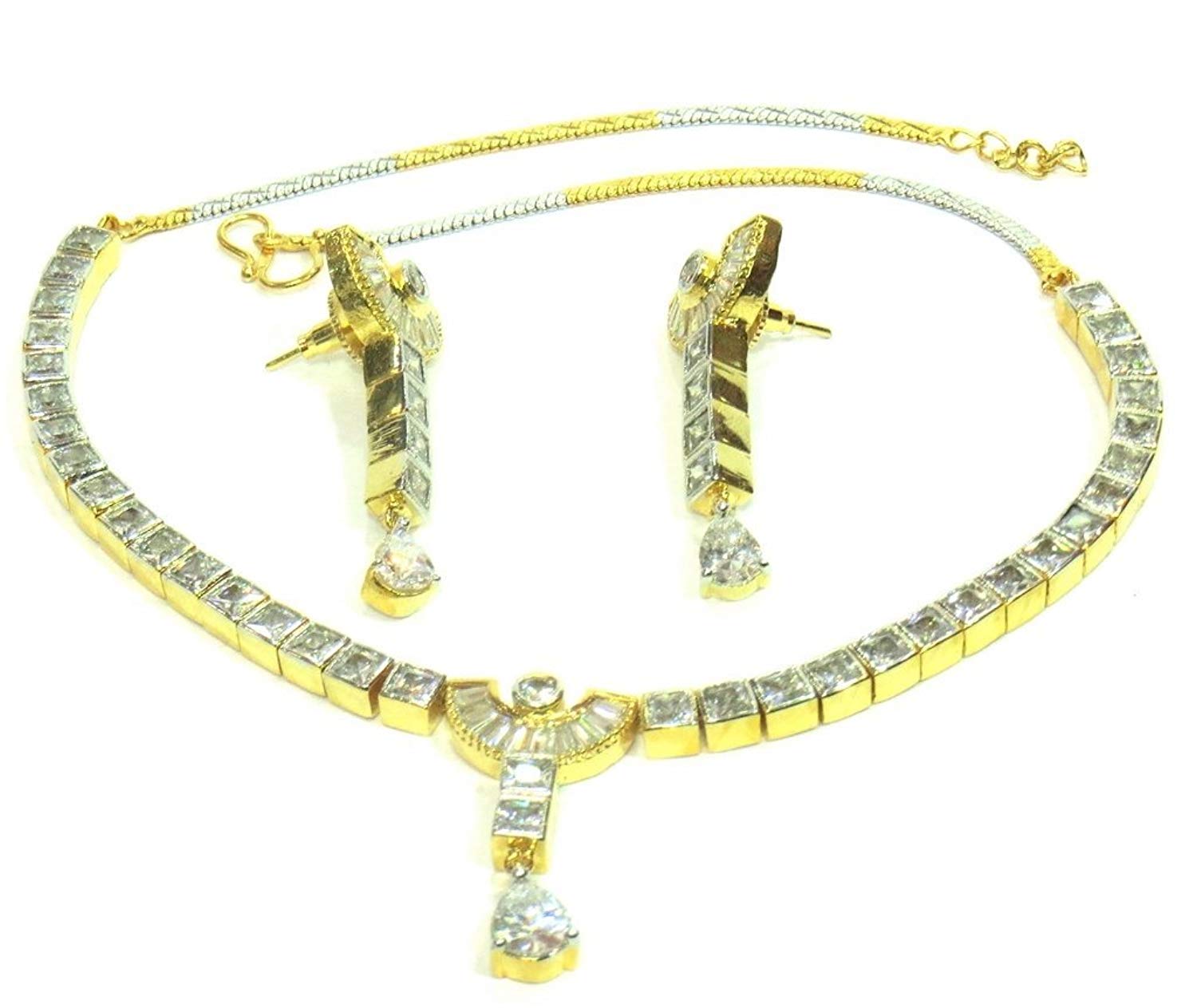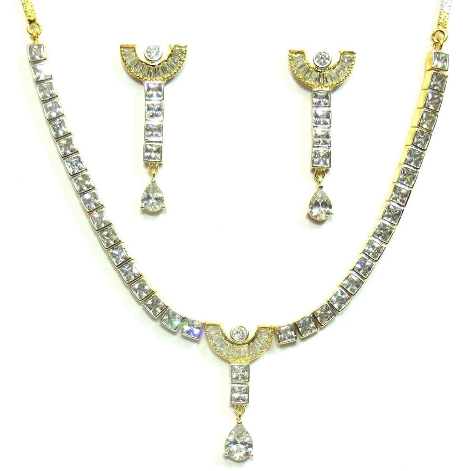 - Pendant Set Weight - 41 Grams , Colour - Clear , Plating - Gold , Length - 19 - Cms. , Width - 3.5 - Cms. Earrings Length - 4.5 - Cms. , Earrings Width - 2.5 - Cms.
