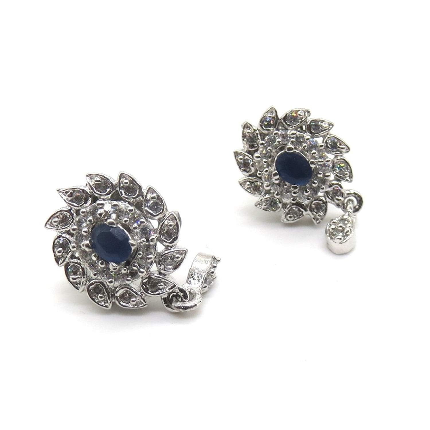 Jewelshingar Jewellery Rhodium Plated Blue Colour Earrings For Women (44696-gjt)