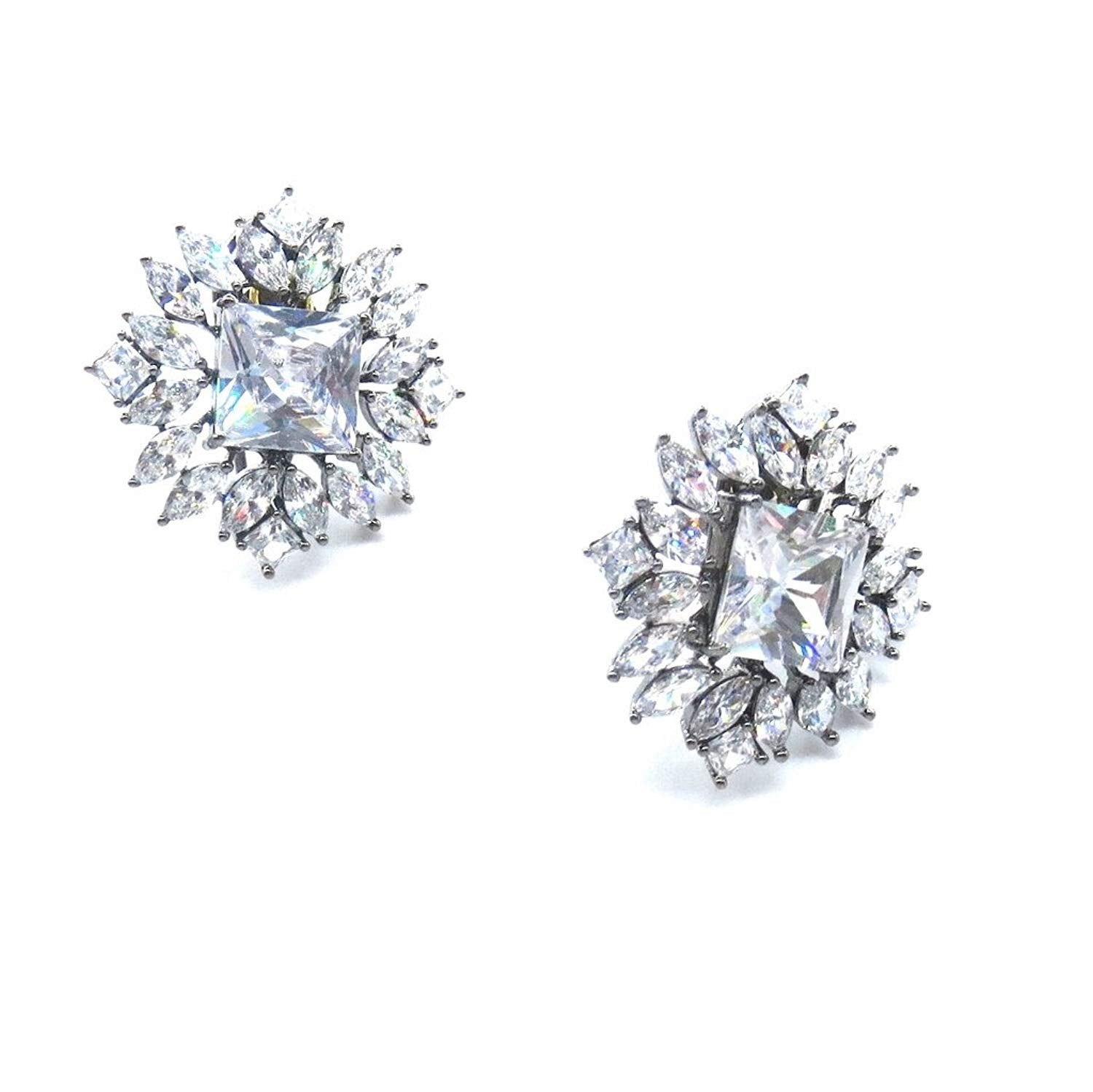 Jewelshingar Jewellery Victorian Plated Clear Colour Earrings For Women (44494-gjt)