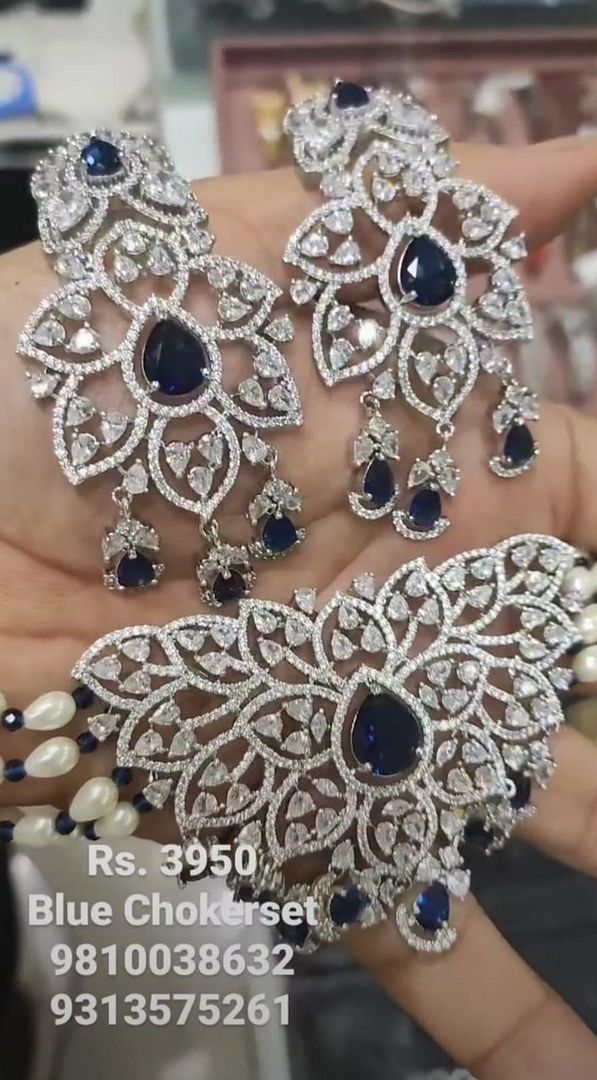 Zircon Necklace In Blue Colour And Silver Plating By Chokerset NKWA0189