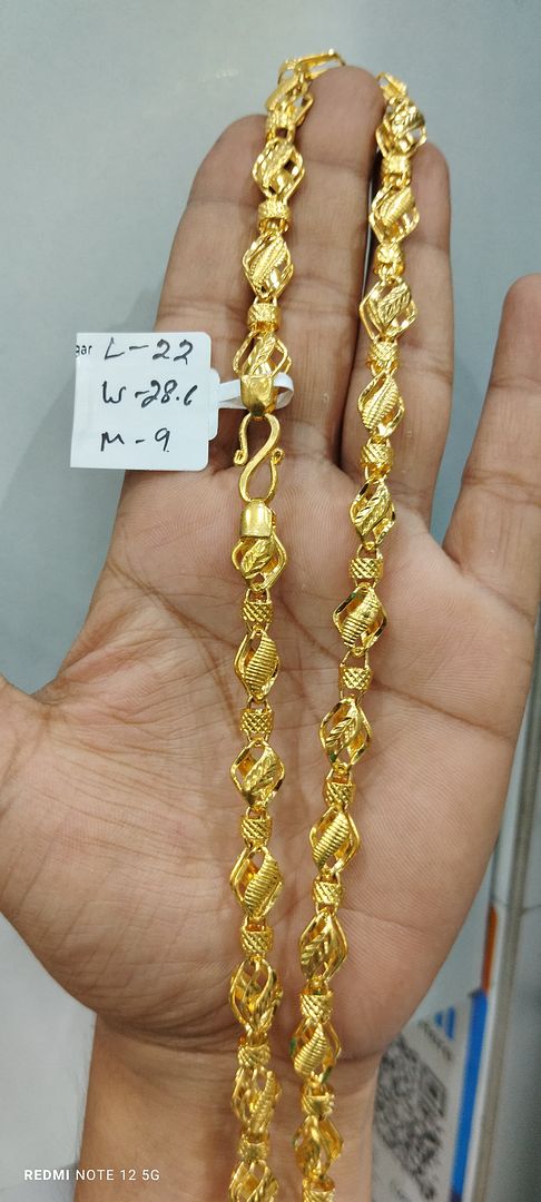 200 Milligram Gold Forming Chains By Chokerset Weight 28.6 Grams , Size 22 ( 22.86 CMS ), Width 9 MM, Colour Gold, Plating Gold ( WA0223 )